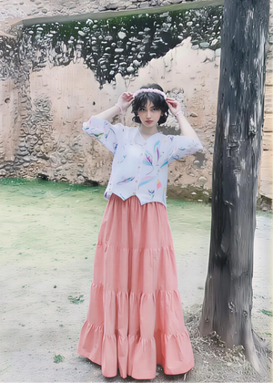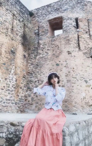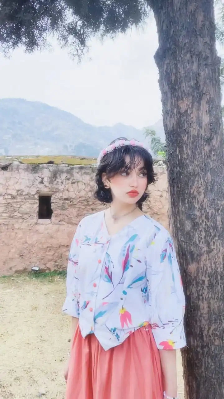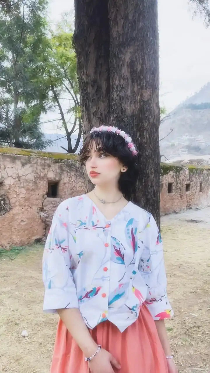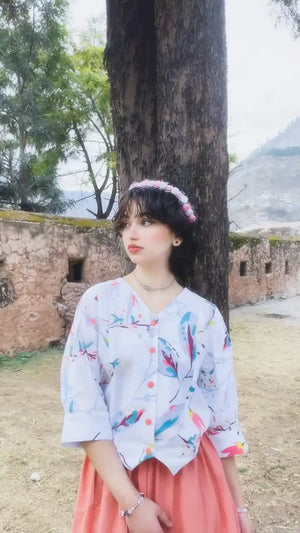 A breathable cotton fusion shirt featuring soft abstract prints and a relaxed silhouette. Perfect for everyday wear and effortless styling with skirts or trousers.