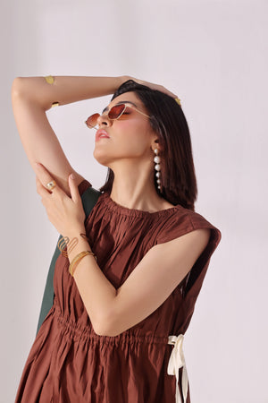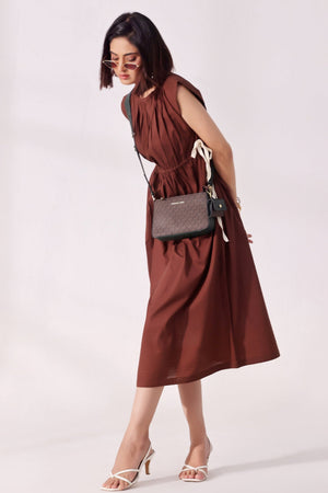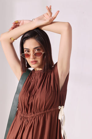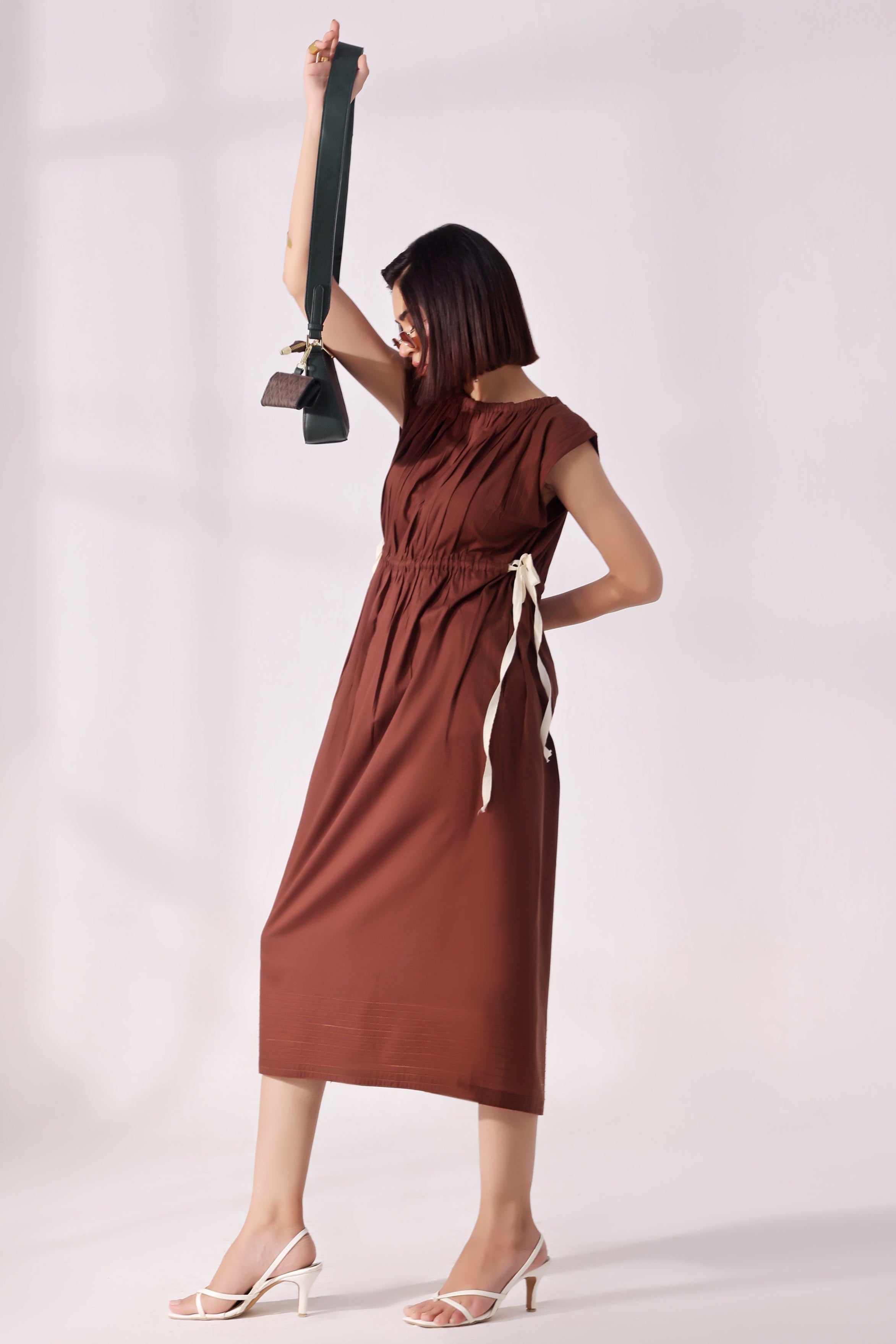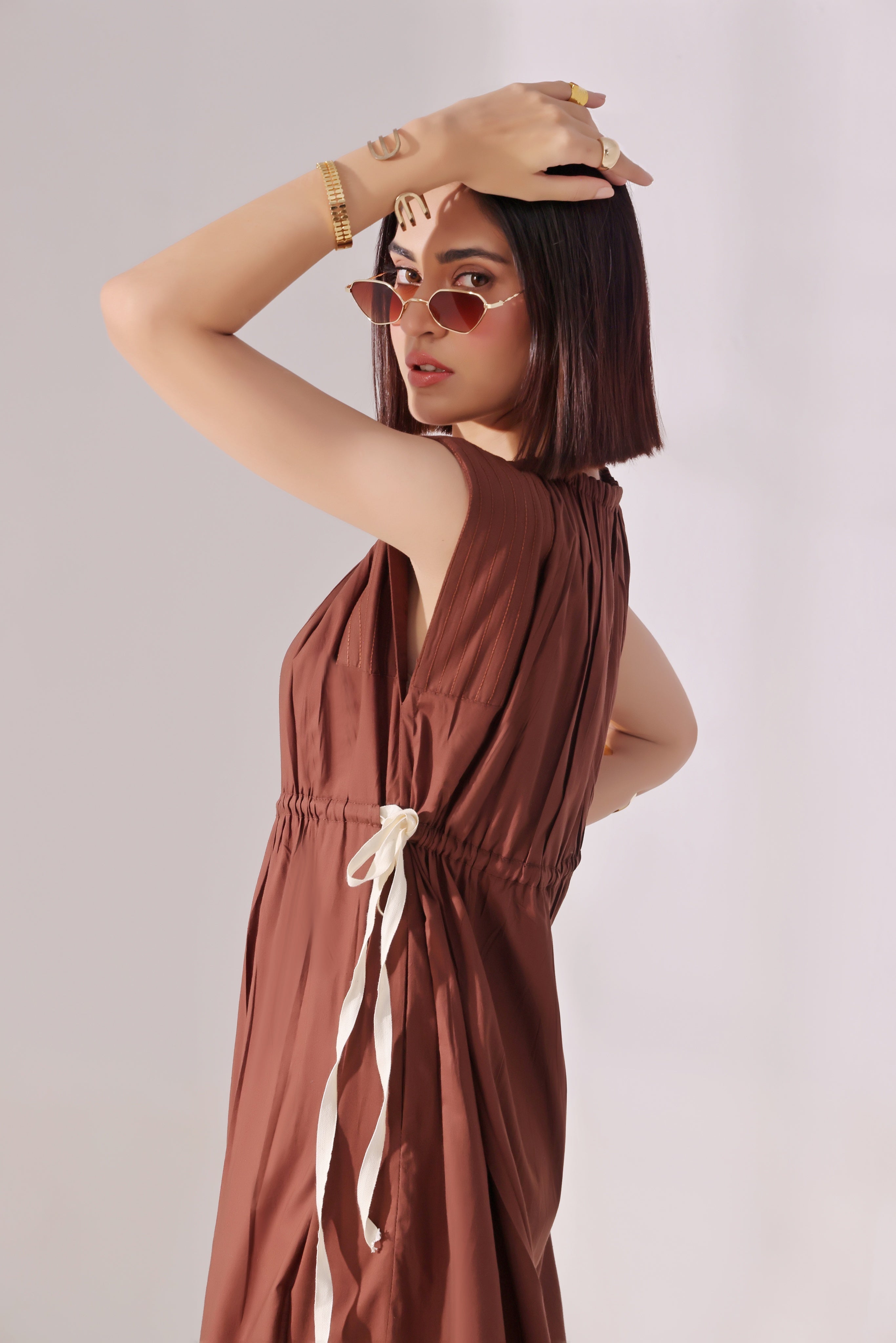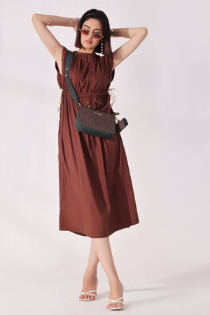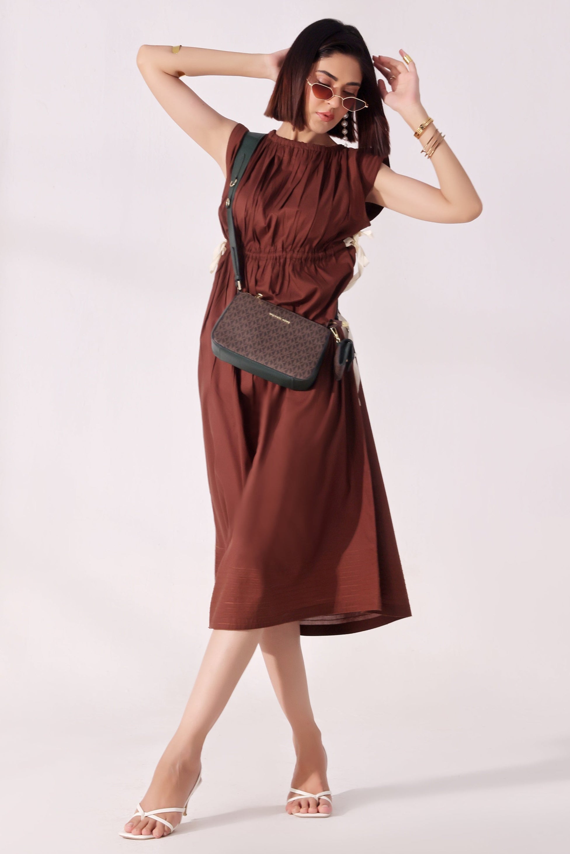 Add a touch of effortless charm with our Coffee Tie-Waist Long Dress, a timeless staple designed for playful elegance and modern ease. Perfectly balancing comfort with sophistication, this dress makes everyday dressing feel chic and refined.