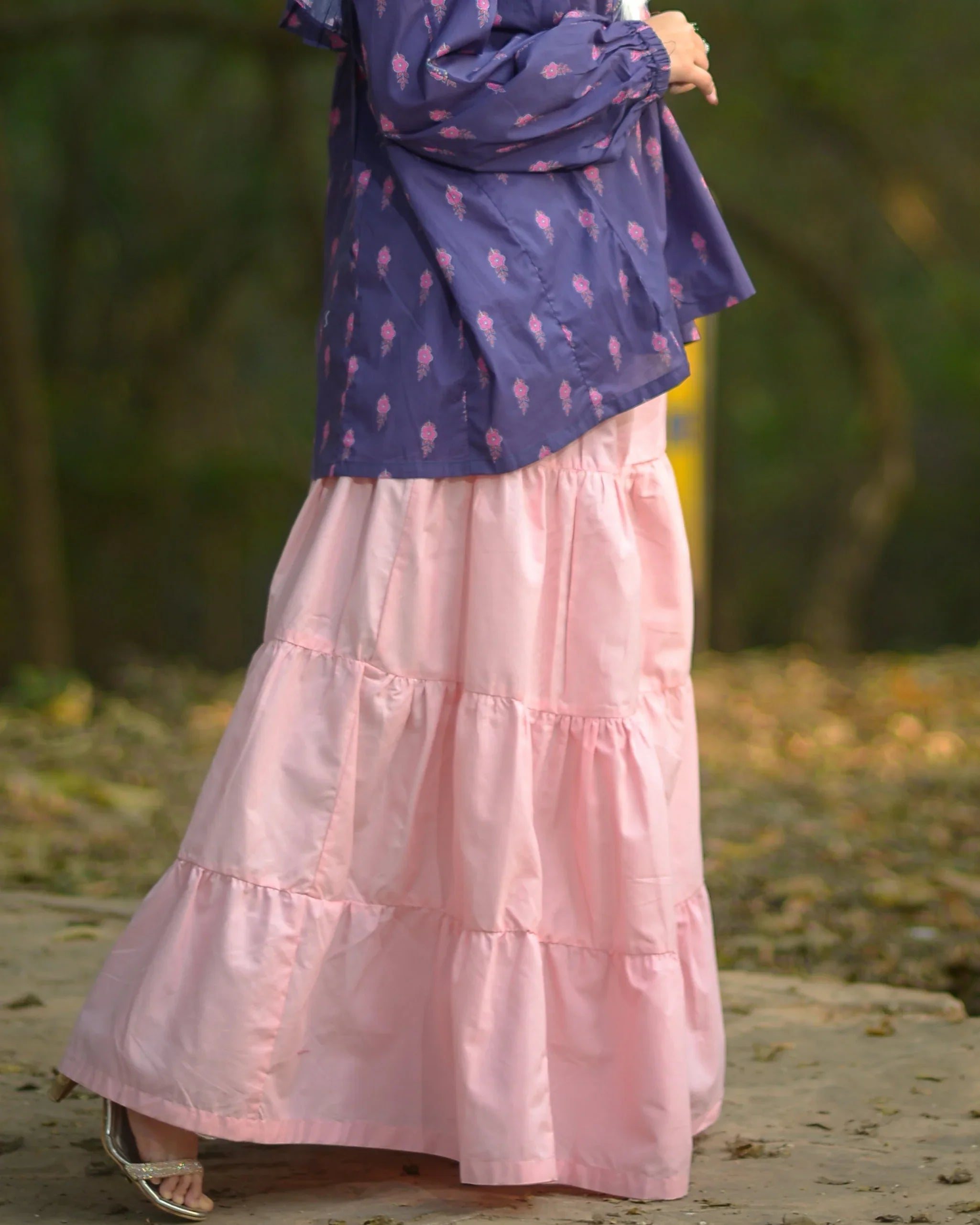 Urban Cut Pink Cotton Maxi Skirt Elegant Tiered Long Skirt