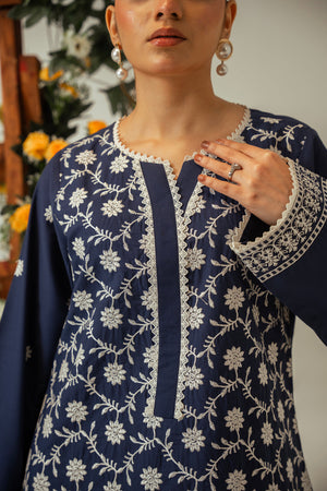 Serene By Zouj Stitched Co Ords Emb Cotton Suit-Blue