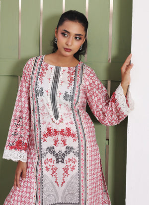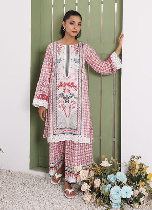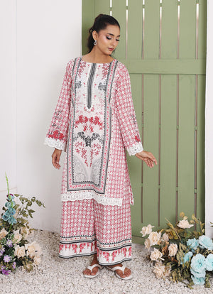 Whimsical Garden By Ahlam Stitched Summer Co-Ords Suit-Crimson Glow
