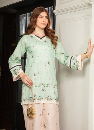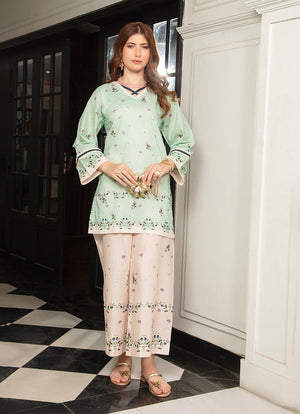 Ahlam By Safa Textile Stitched Co-Ords Lawn Suit-Olive Green & Beige