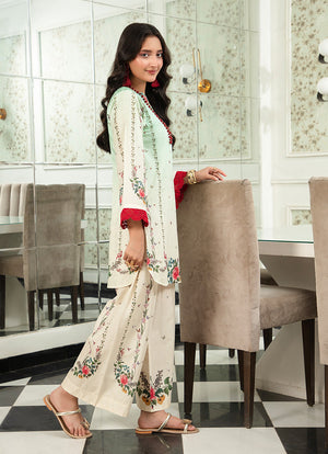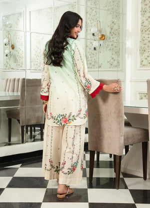Ahlam By Safa Textile Stitched Co-Ords Lawn Suit-Olive Green & Skin Tone