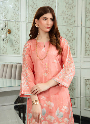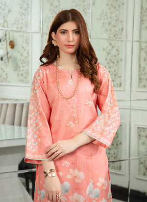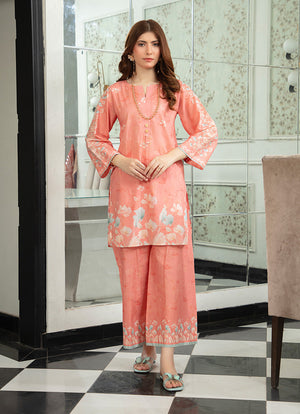 Ahlam By Safa Textile Stitched Co-Ords Lawn Suit-Peach Chic Printed