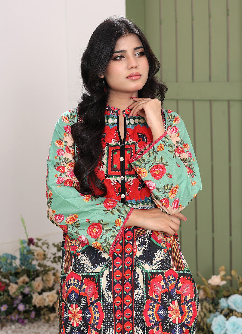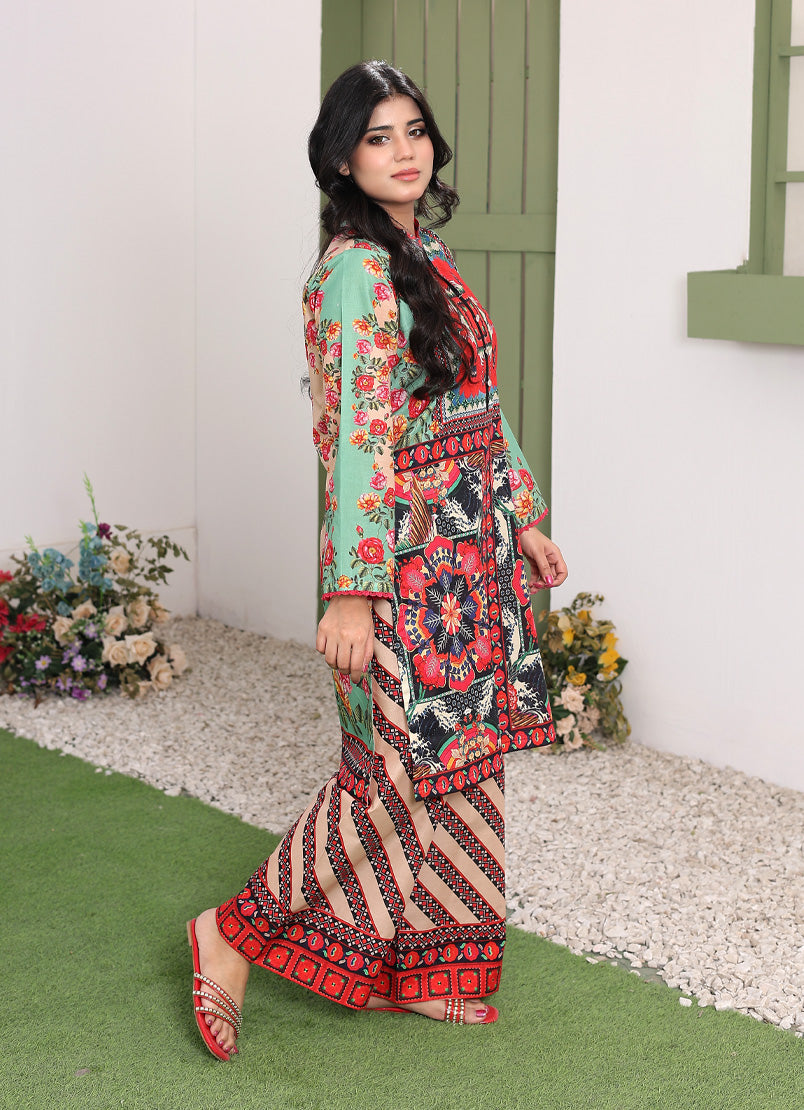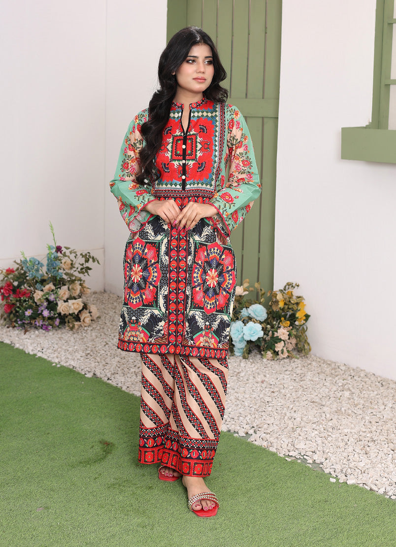 Whimsical Garden By Ahlam Stitched Summer Co-Ords Suit-Rainbow Mist