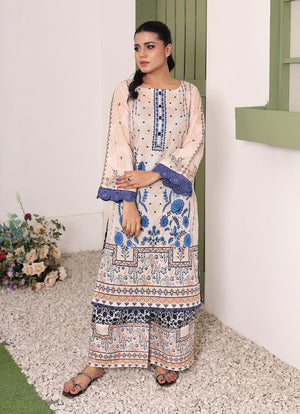 Whimsical Garden By Ahlam Stitched Summer Co-Ords Suit-Sky Whisper