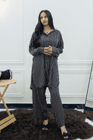 Her By A&M Stitched 2 Piece Summer Suit-04-Brown & Black