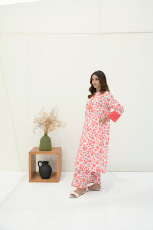 Inject a burst of energy into your seasonal wardrobe with 'Syrah.' This vibrant 2-piece co-ord set is a celebration of color, featuring bright pink and orange tones that make it an instant eye-catcher.