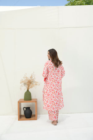 Preet Print Edit By Suitsu Stitched Summer Suit-Syrah Peach Peony