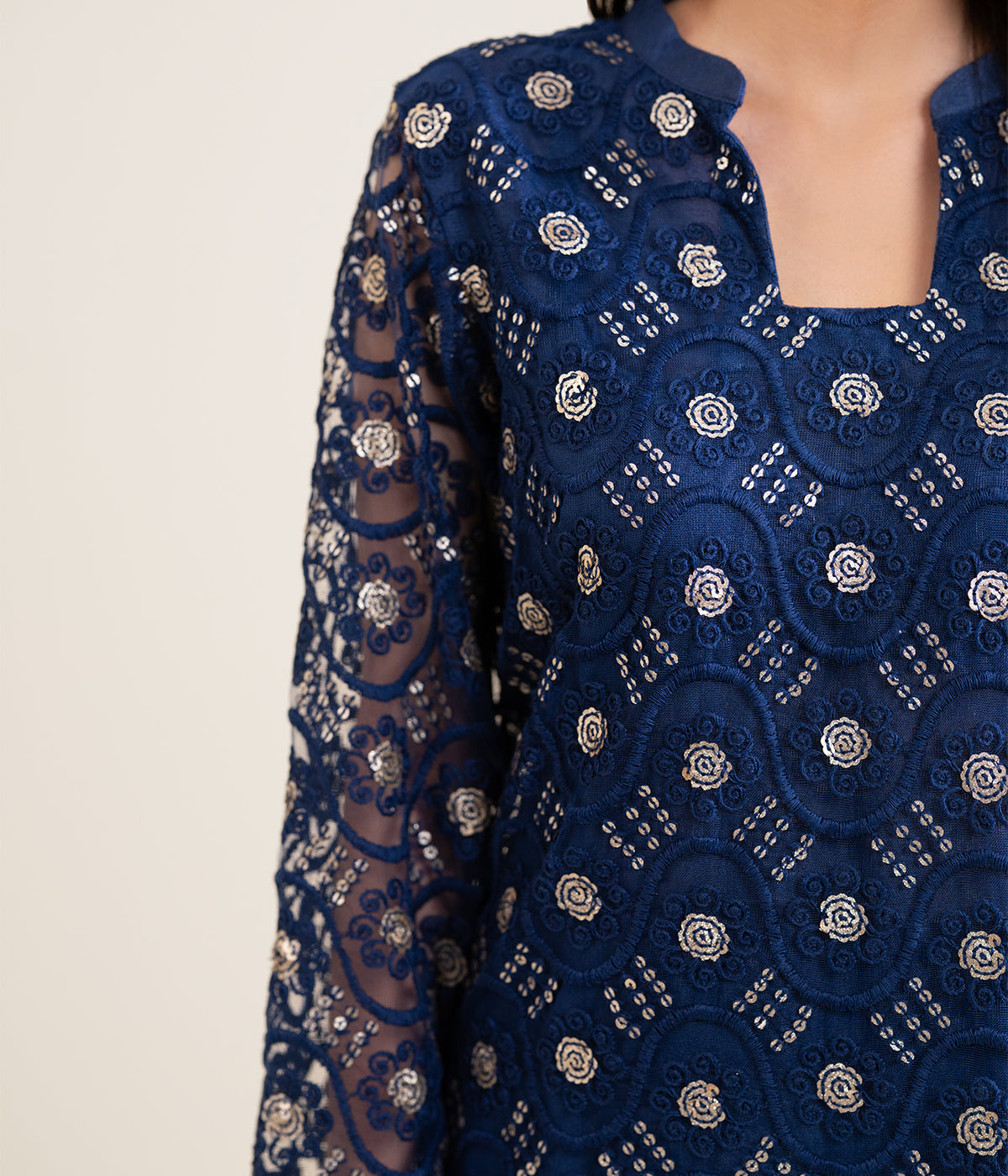 Shirt: Embroidered Dyed Cotton Net