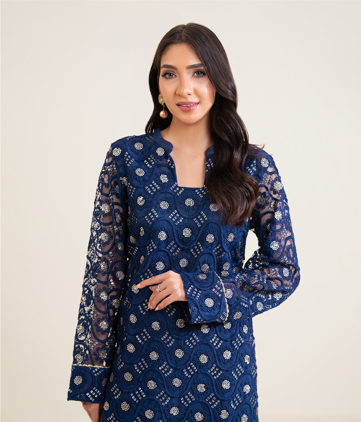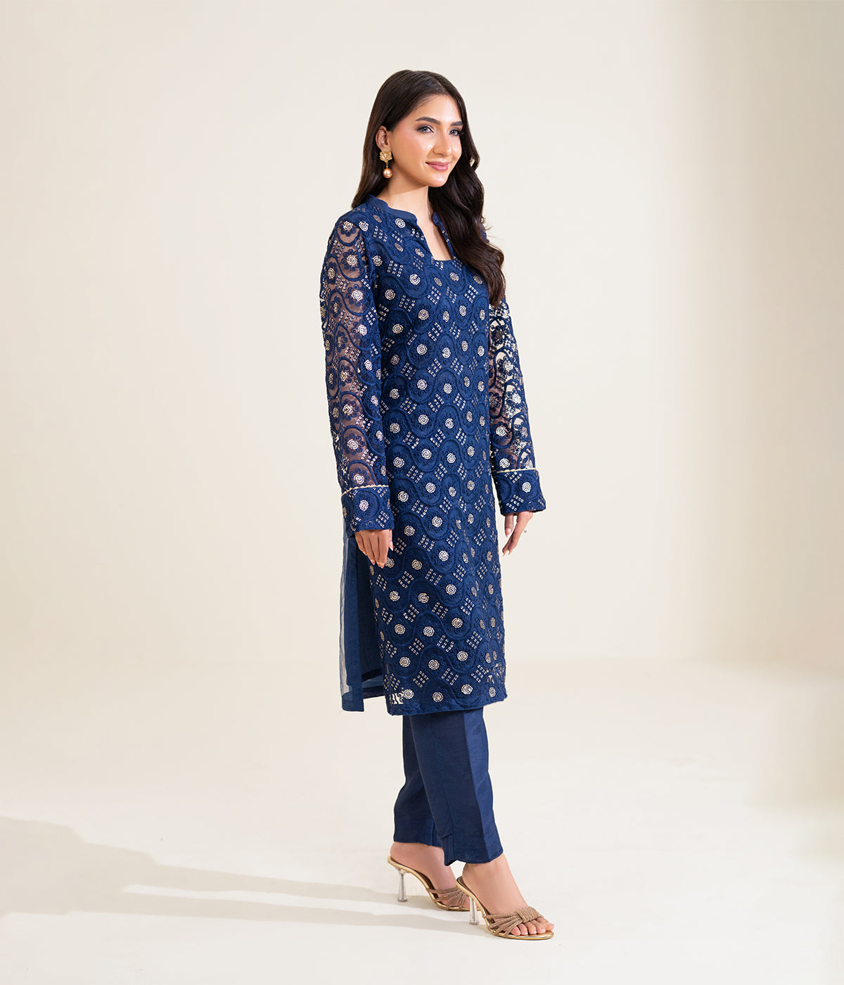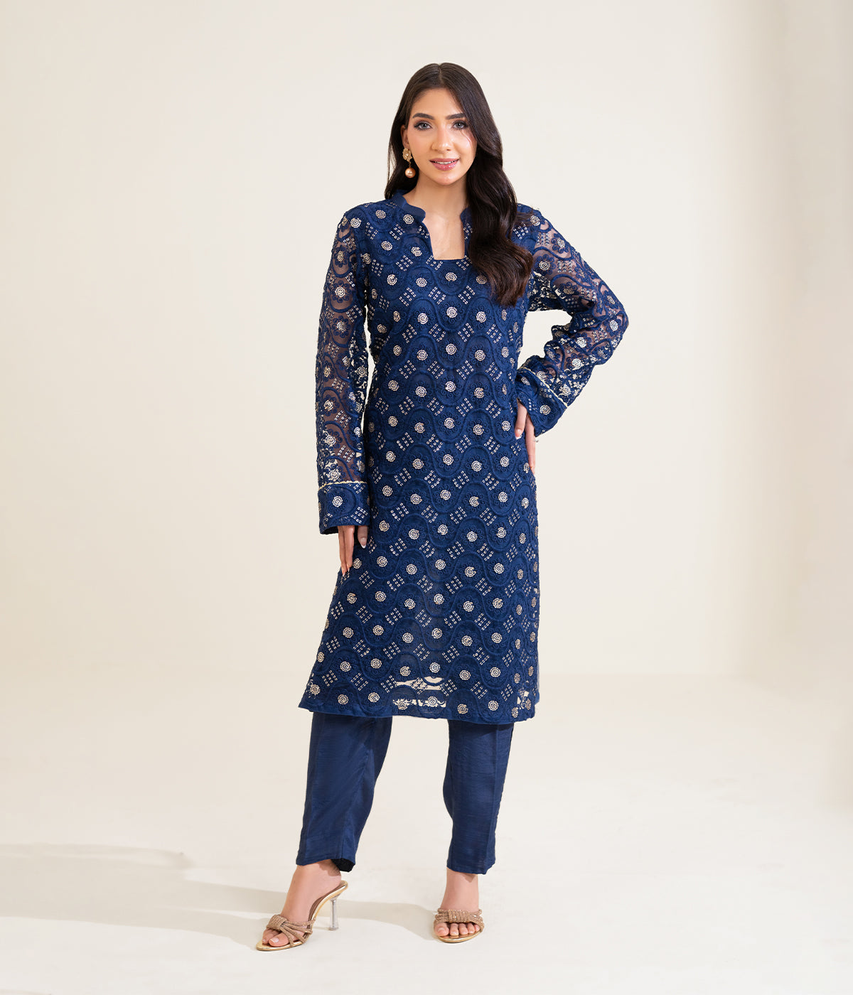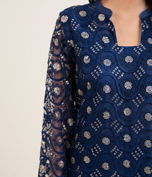 Sinopia Stitched 2 Piece Summer Women Suit-SSE26-022-Dark Blue