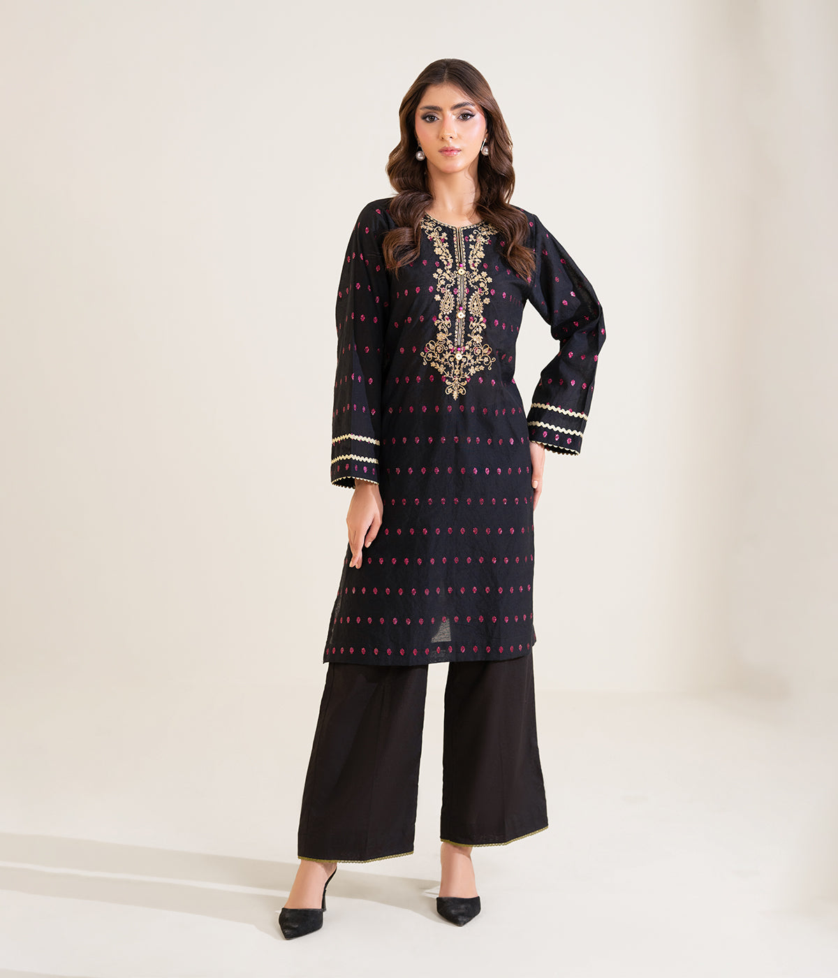 Sinopia Stitched 2 Piece Summer Women Suit-SSE26-006-Black