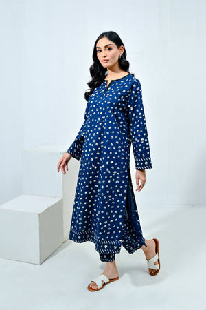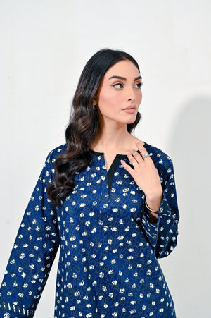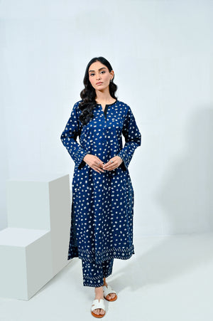 Step out in style with this elegant navy blue screen printed coord set, featuring a beautifully designed kameez paired with chic straight pants. The intricate prints paired with a border add a touch of sophistication, while the rich navy hue creates a striking look. Pair it with your favorite accessories for a polished finish, making a statement wherever you go!