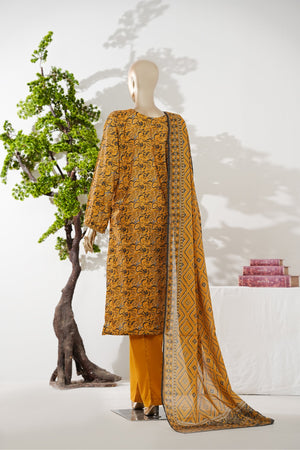 Bin Saeed Stitched 3 Piece Exclusive Printed Lawn Vol-08 Suit-LSM-2894-Yellow