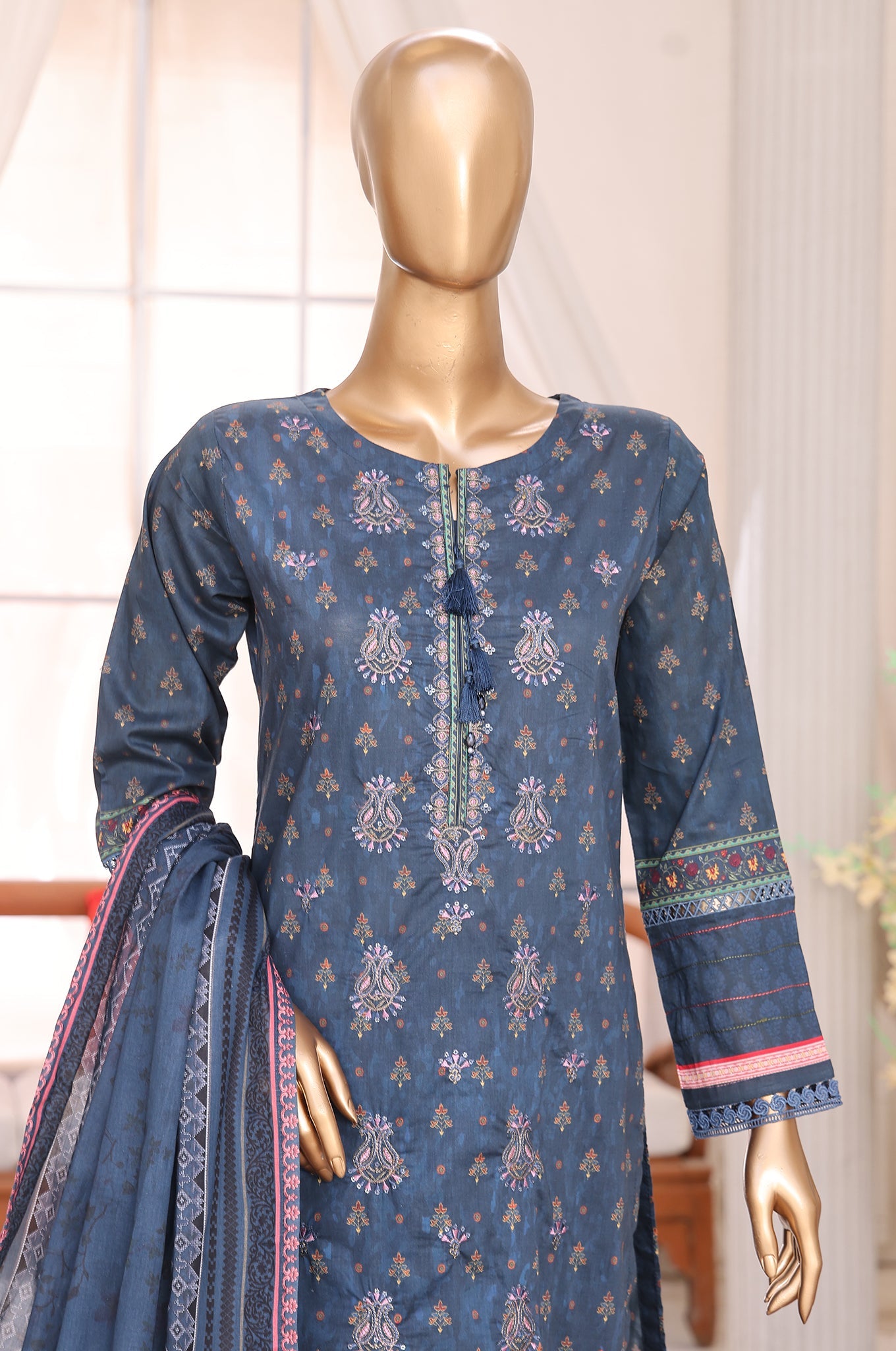 Sumi Stitched 3 Piece Emb Printed Lawn Suit-EM-01-Blue