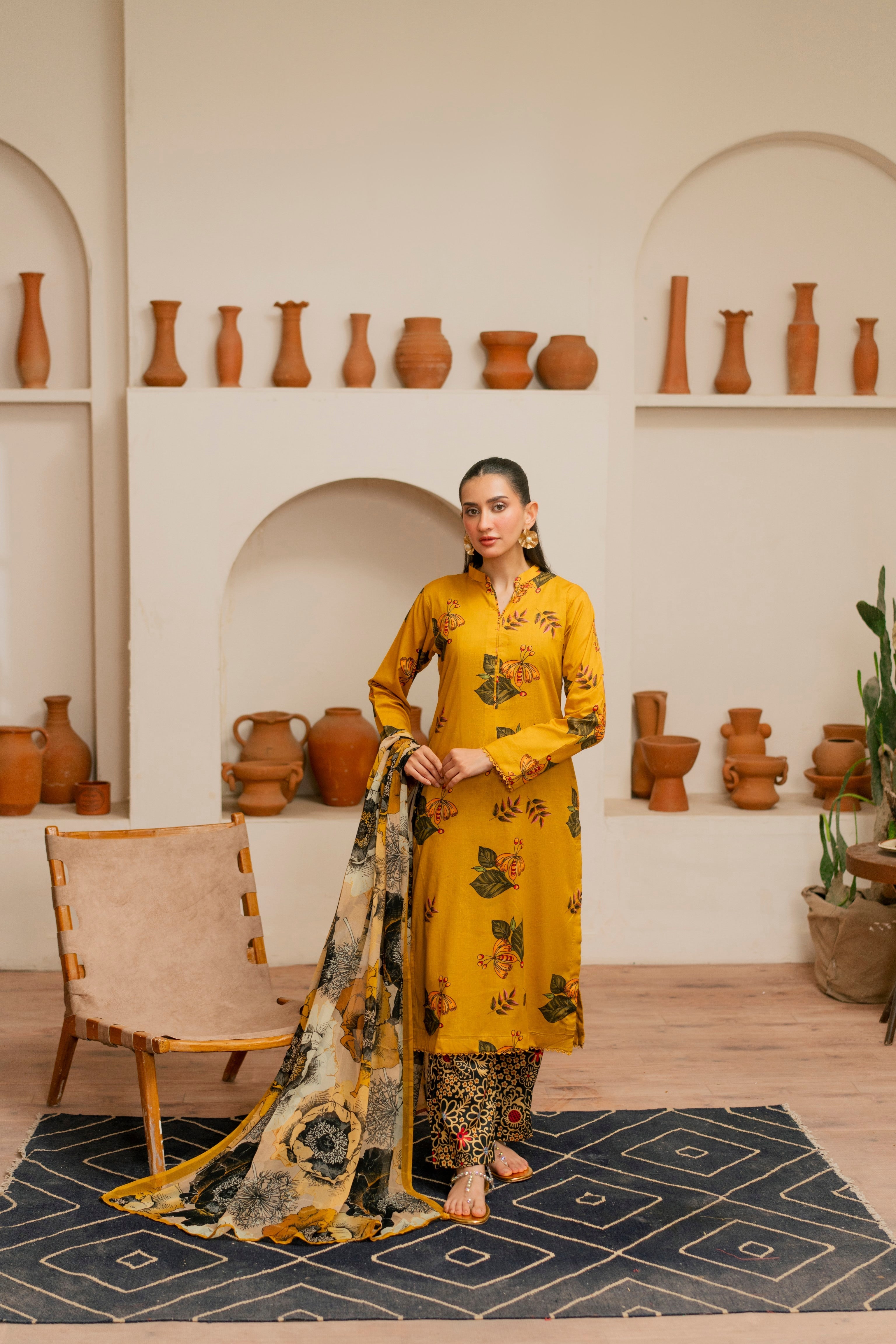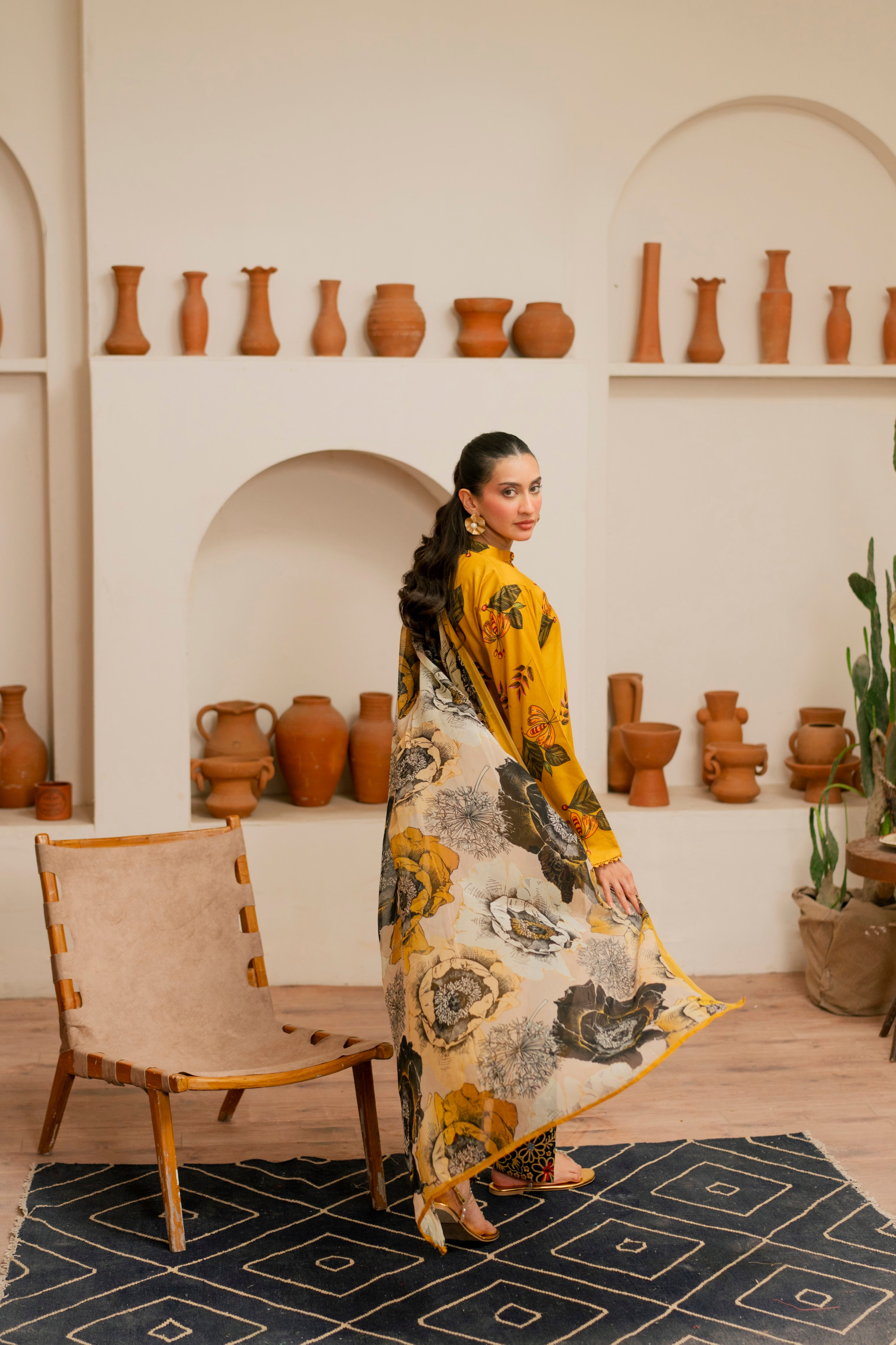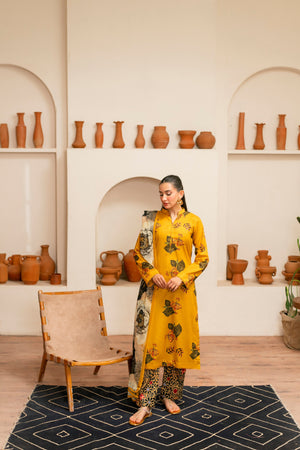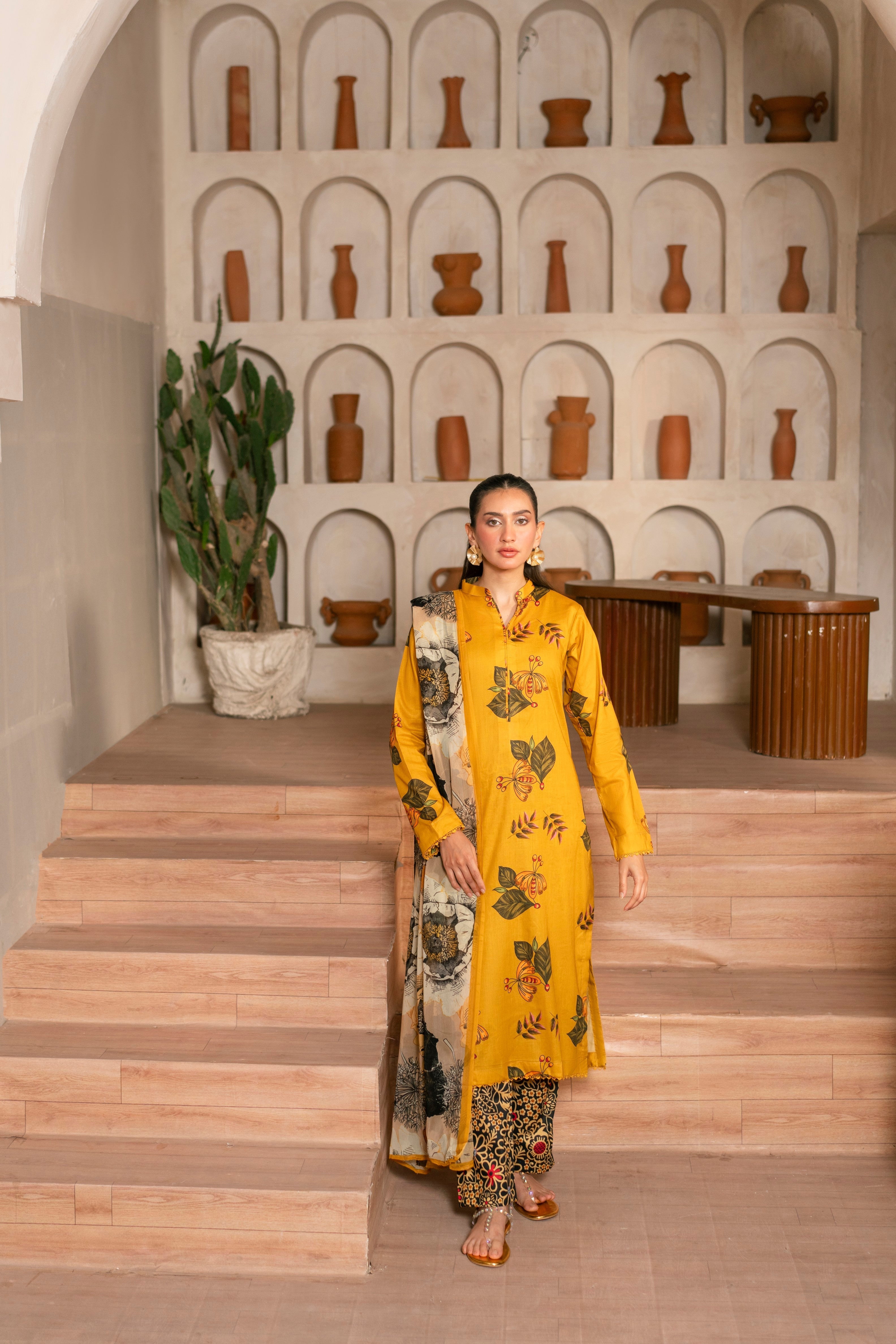 Feathers Unstitched 3 Piece Digital Printed Lawn Summer Suit-ORLIN-FT456