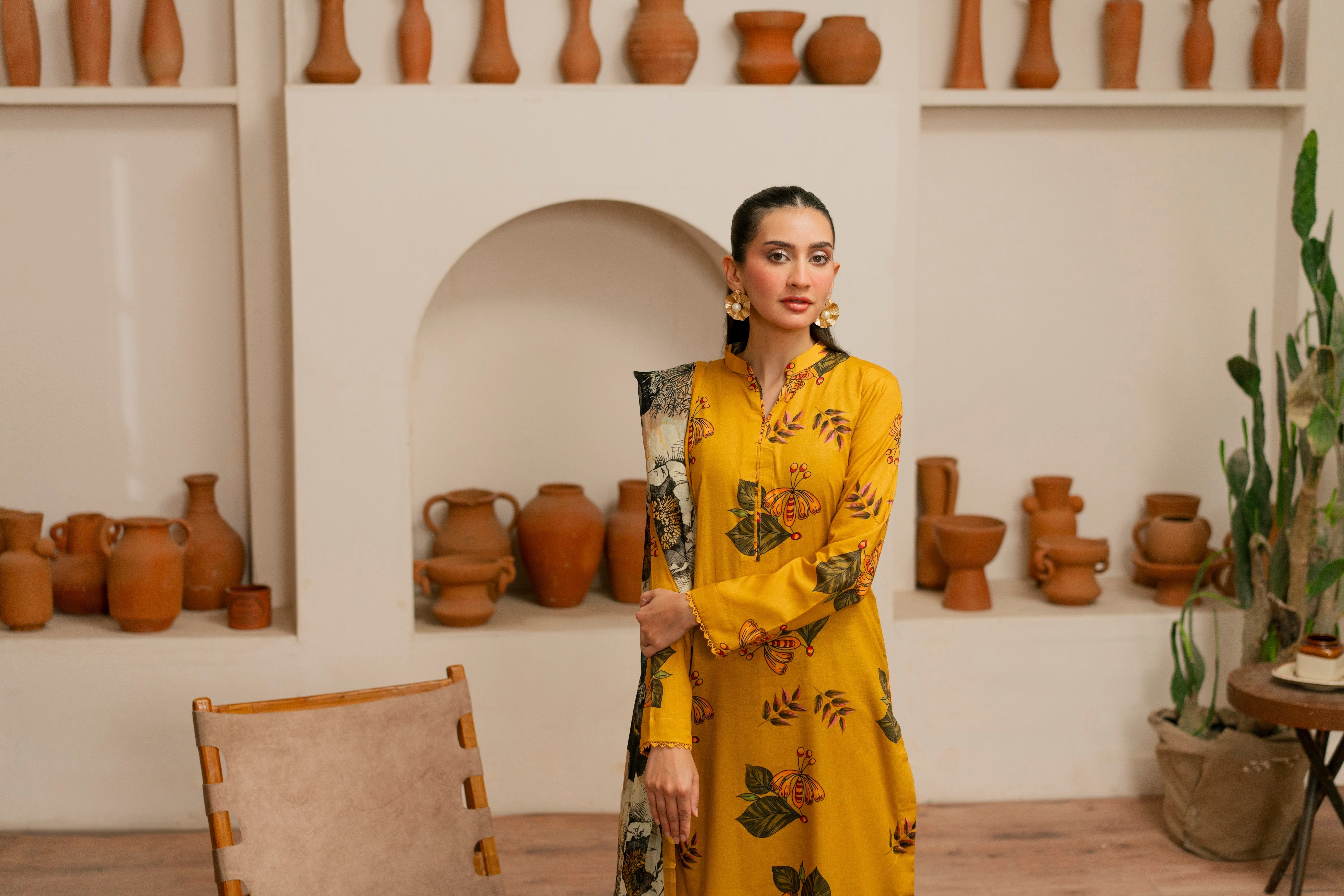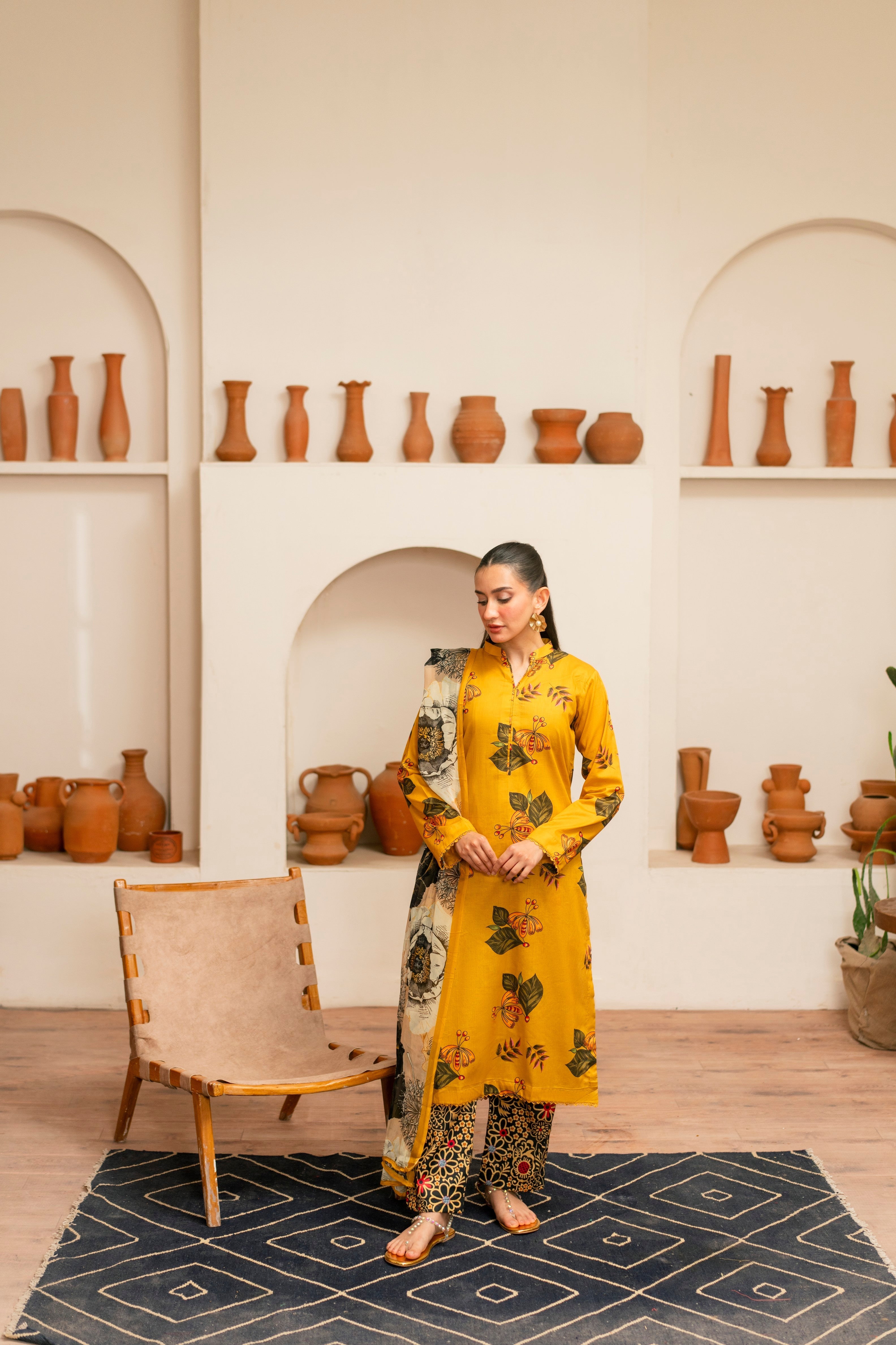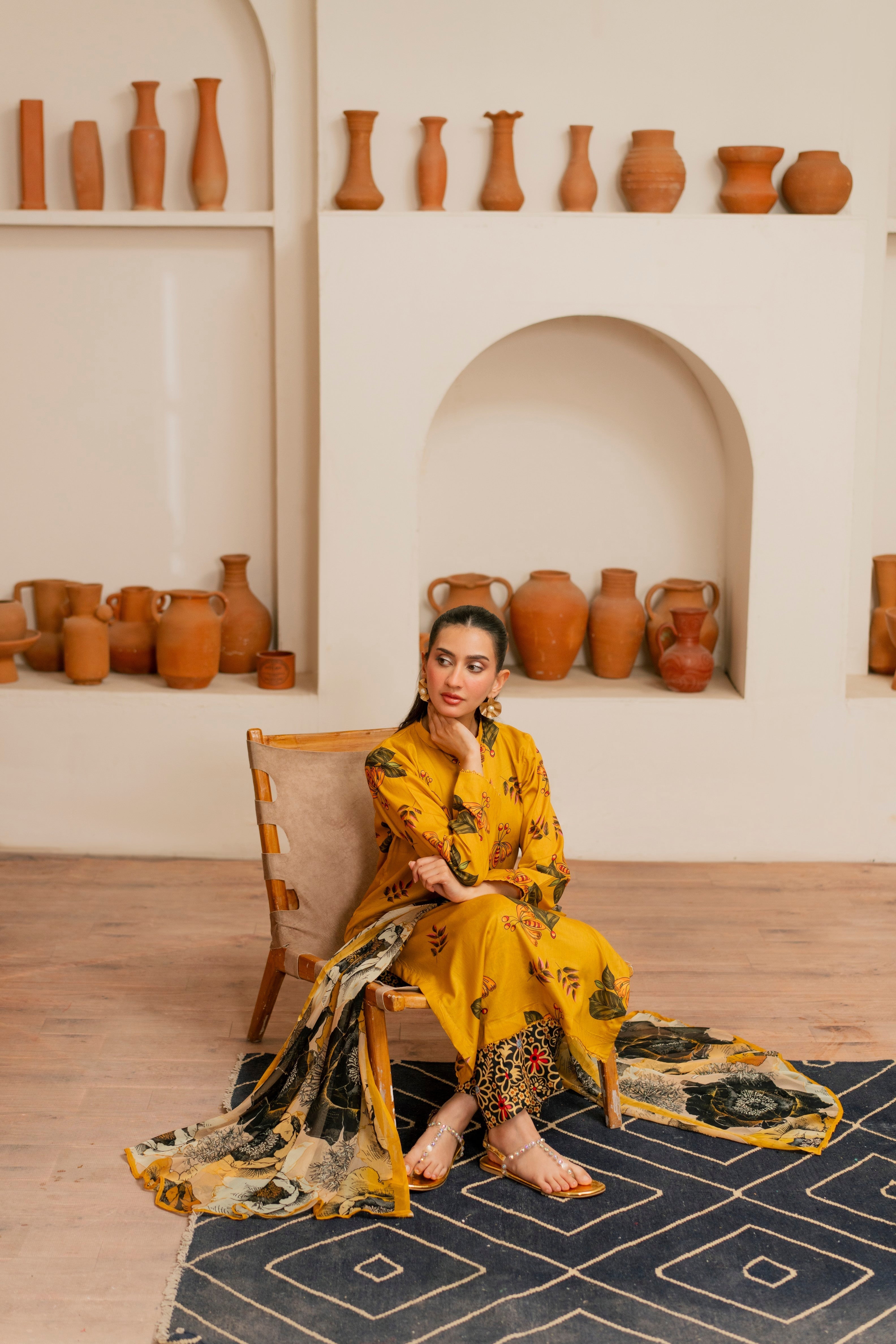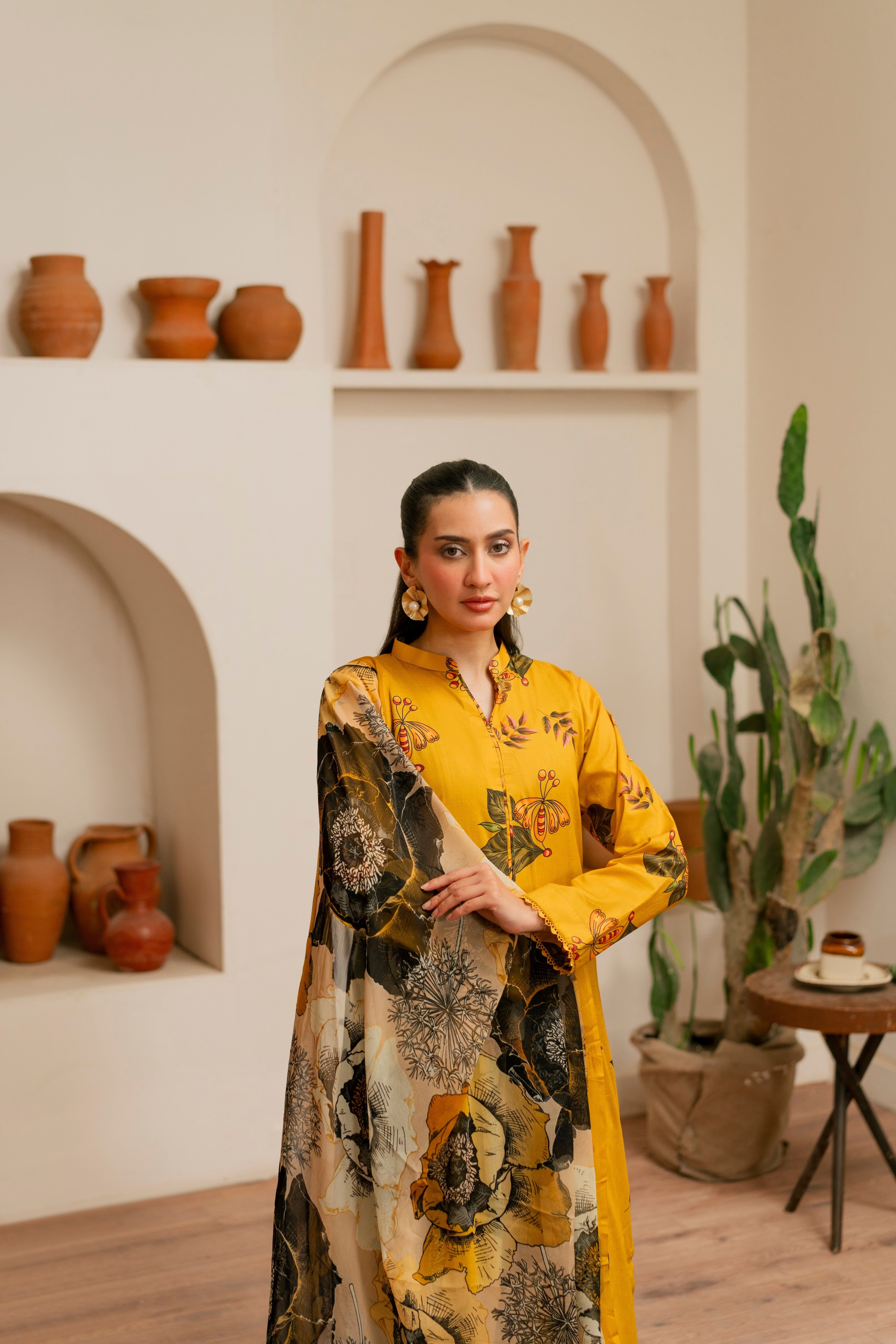 Feathers Unstitched 3 Piece Digital Printed Lawn Summer Suit-ORLIN-FT456