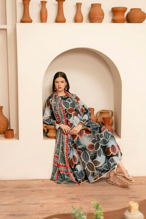 Feathers Unstitched 3 Piece Digital Printed Lawn Summer Suit-CLYNE-FT462