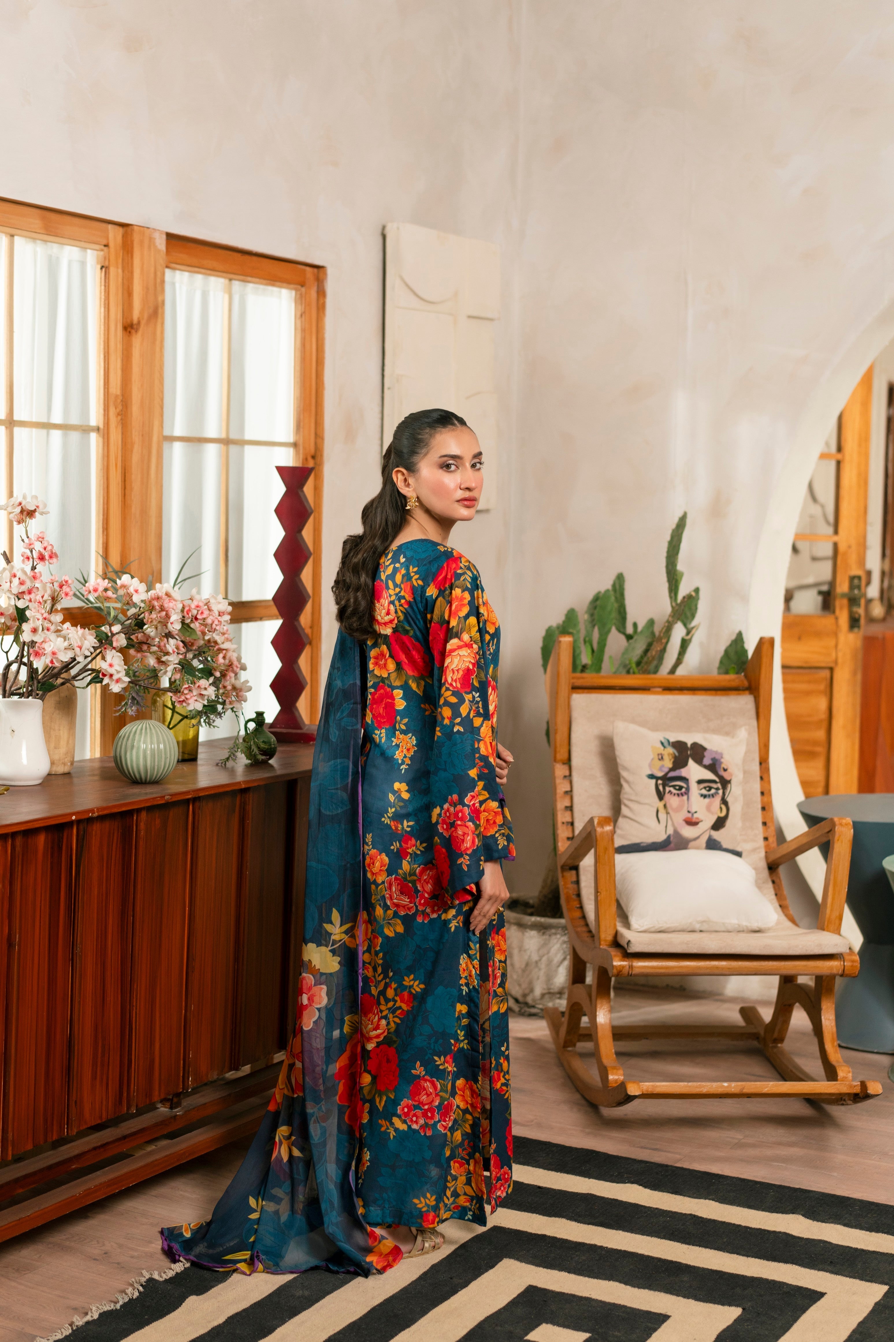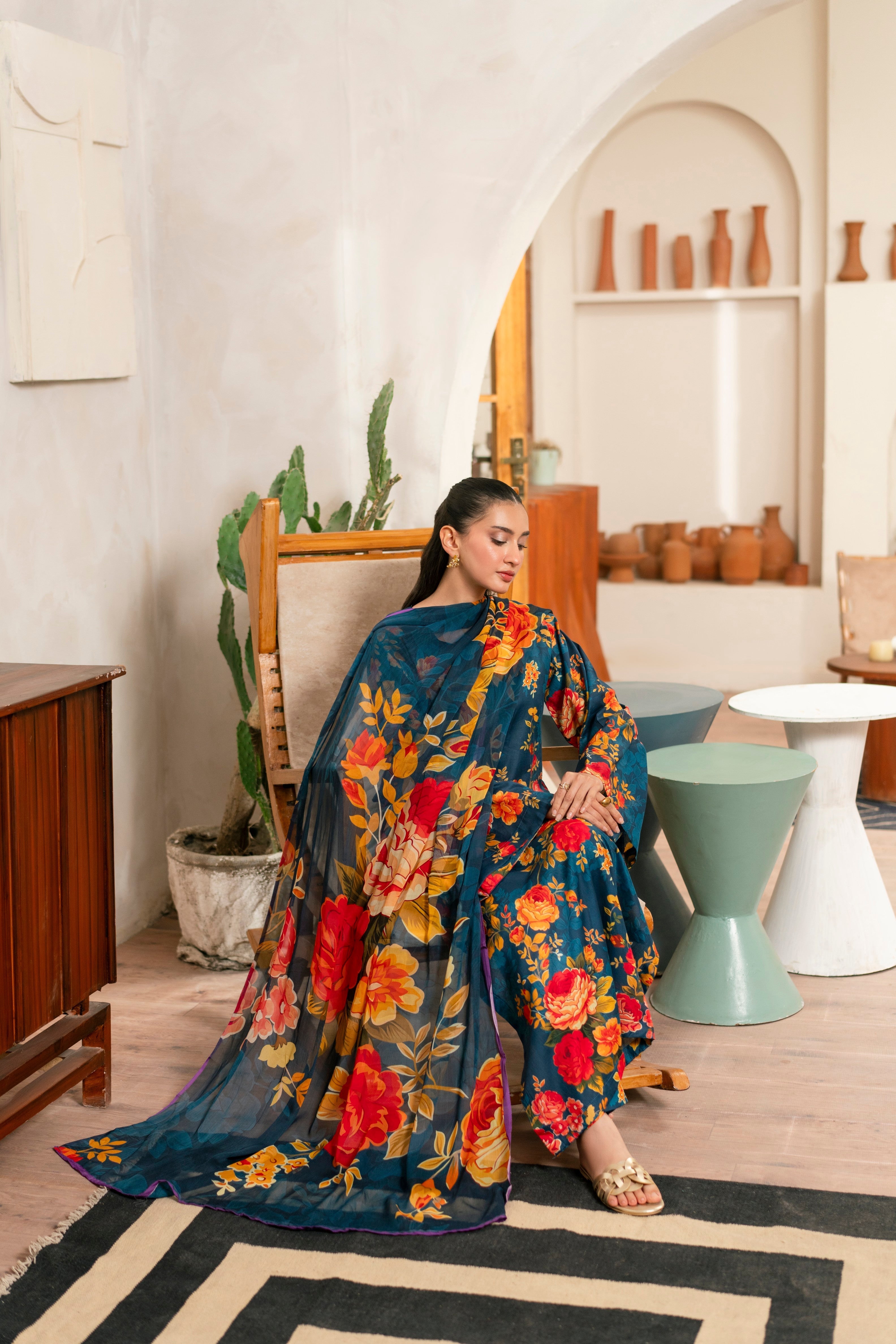 Feathers Unstitched 3 Piece Digital Printed Lawn Summer Suit-NELAM-FT465