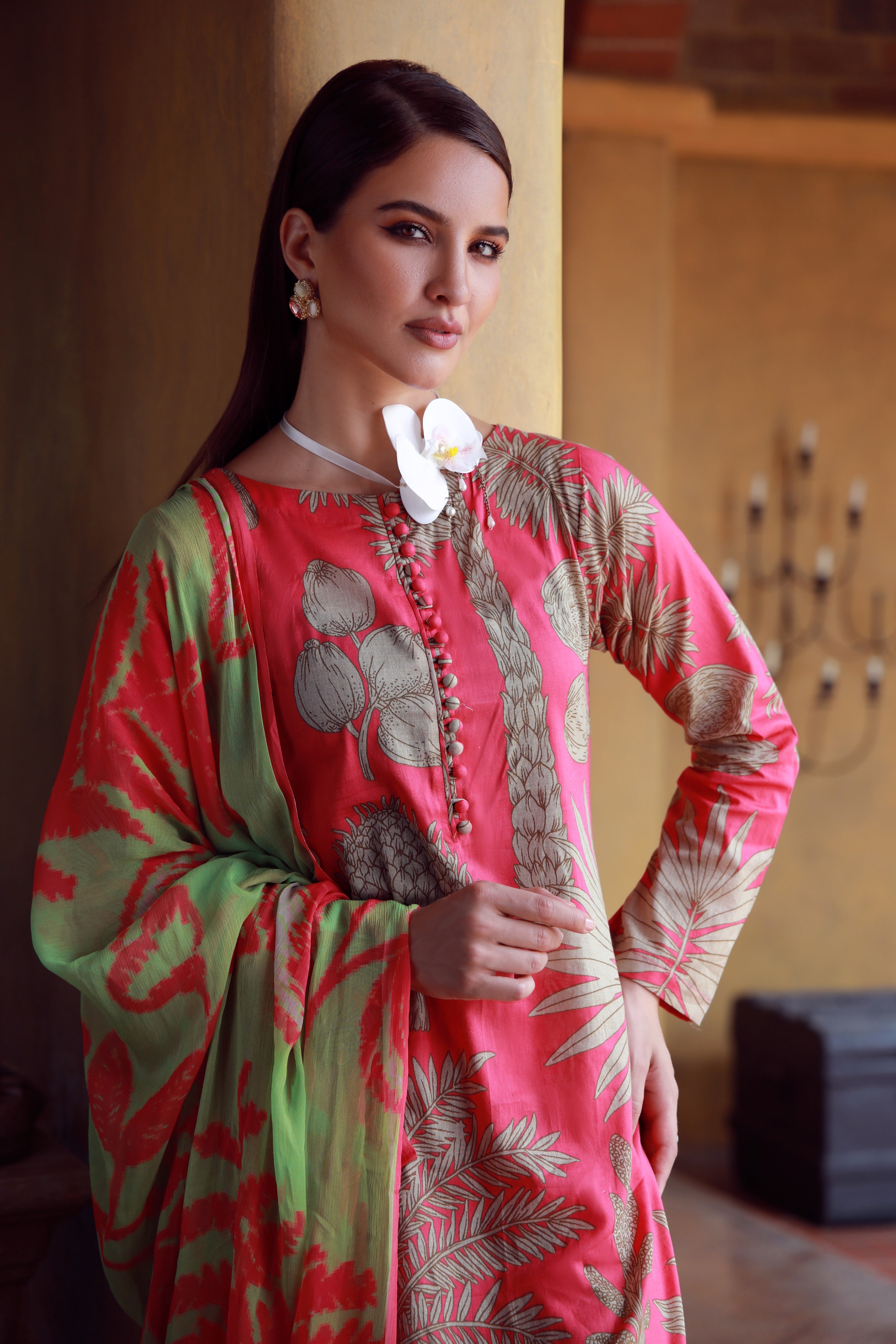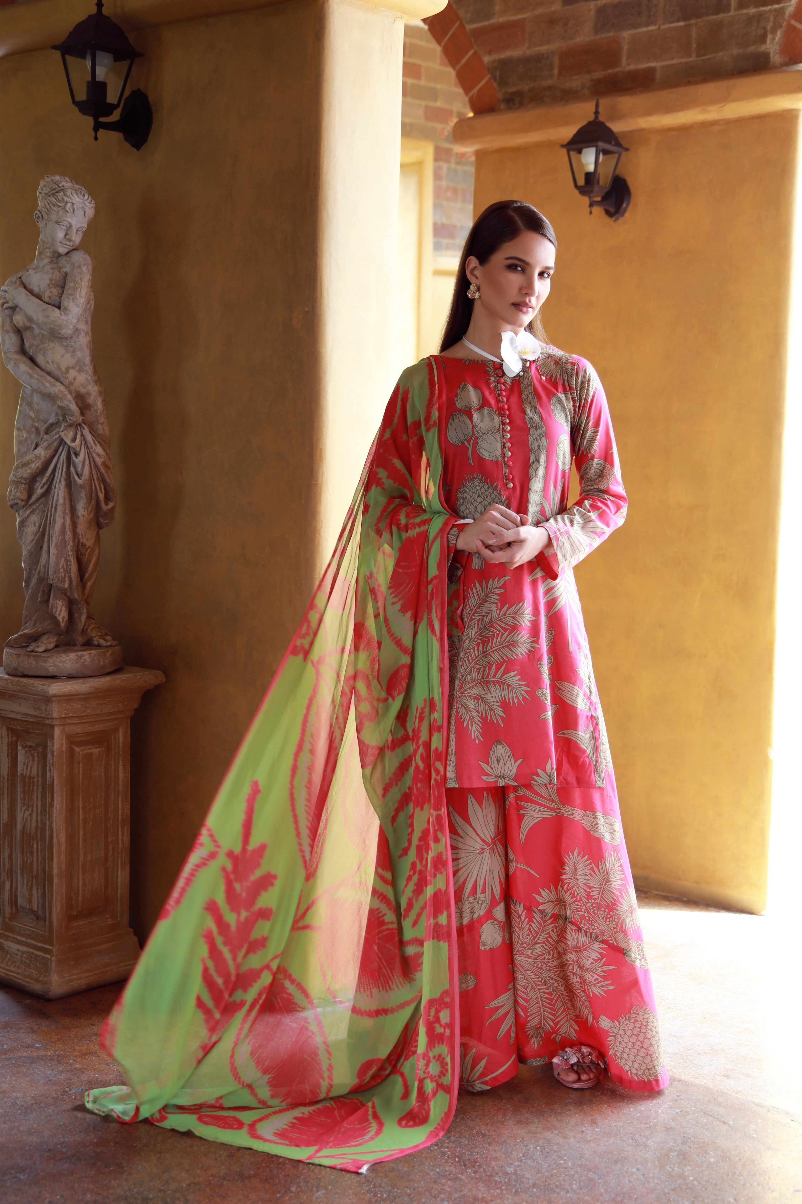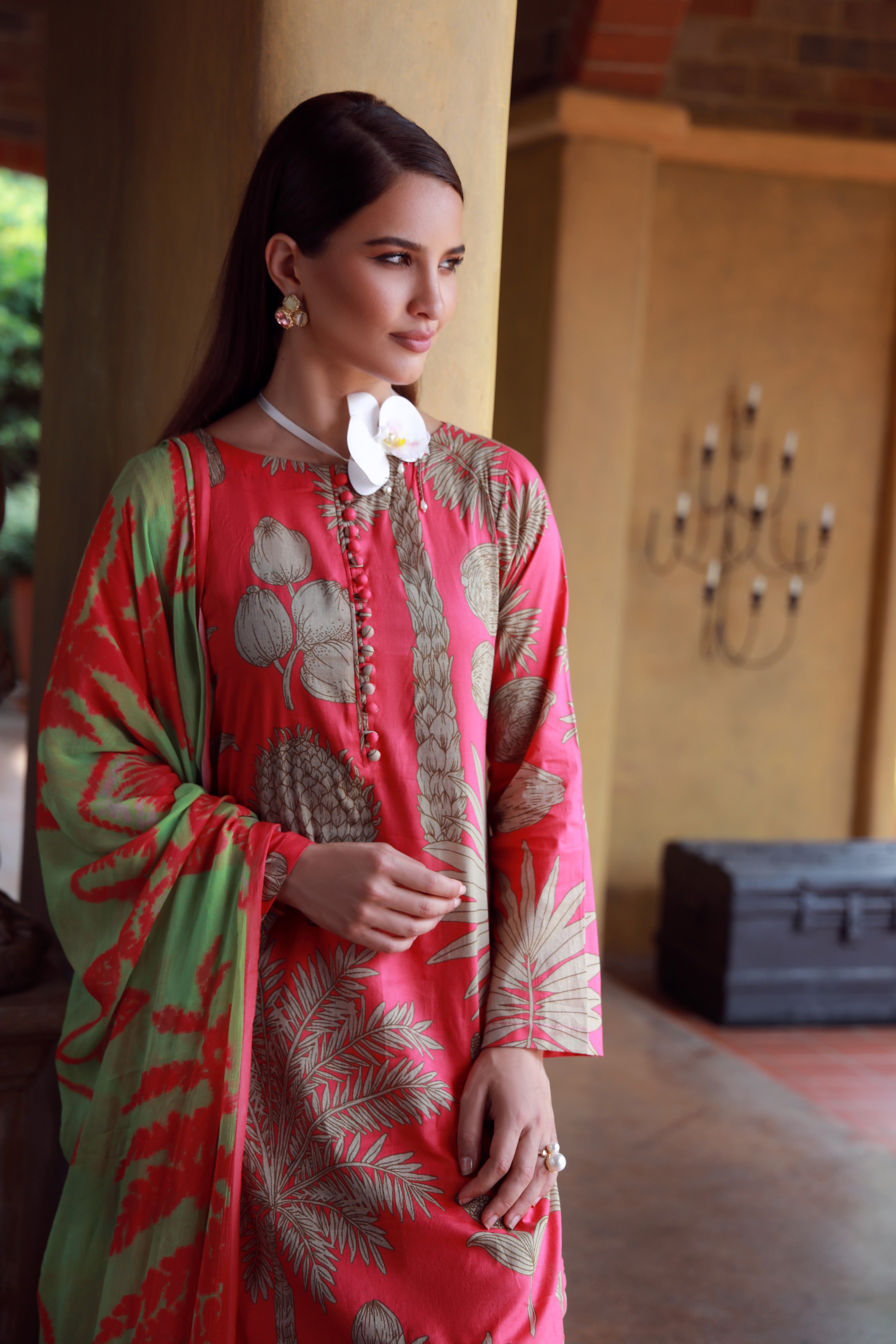 Feathers Unstitched 3 Piece Digital Printed Lawn Summer Suit-PEONYX-FT532