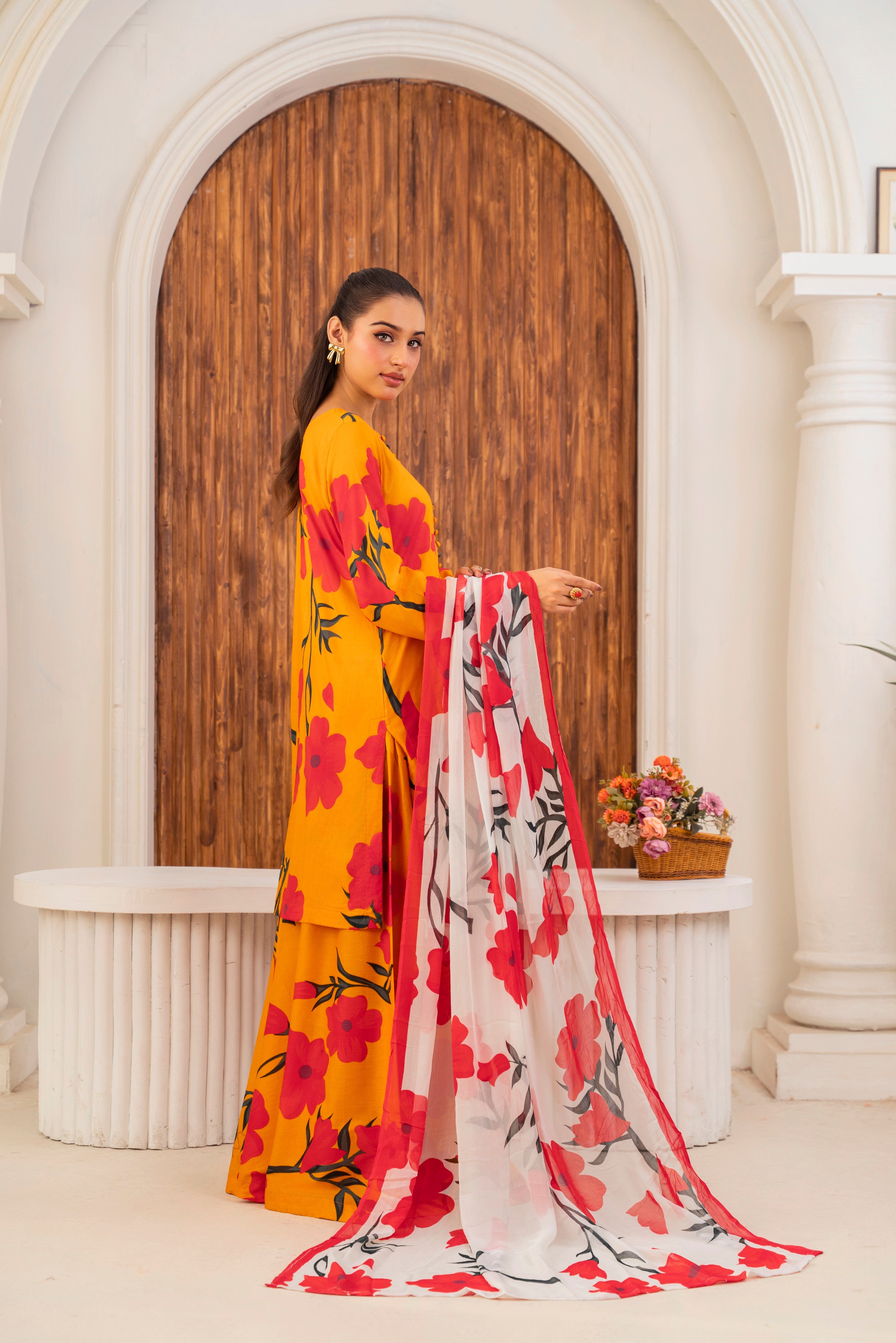 Feathers Unstitched 3 Piece Digital Printed Lawn Summer Suit-HARMIX-FT710