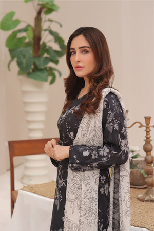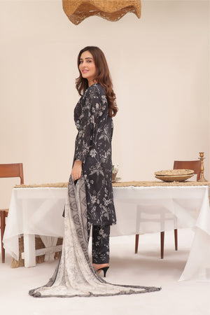 Feathers Unstitched 3 Piece Digital Printed Lawn Summer Suit-Hazy Night-FT261