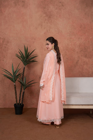 Feathers Unstitched 3 Piece Emb Lawn Summer Suit-Peach Opaline Heirloom-Embroidered 3pc