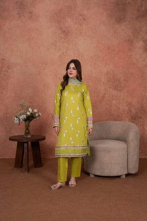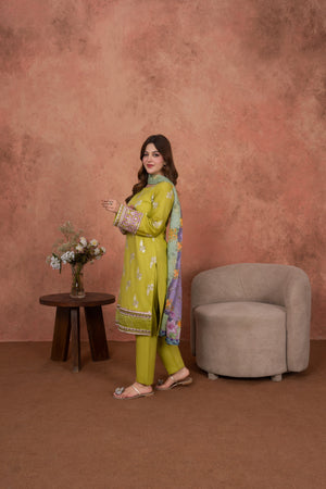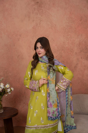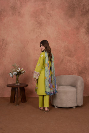Feathers Unstitched 3 Piece Emb Lawn Summer Suit-Citrine Whisper-FT694
