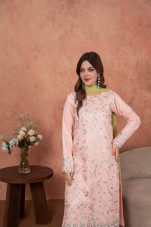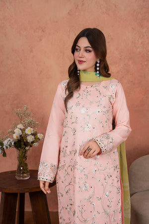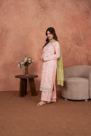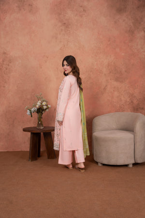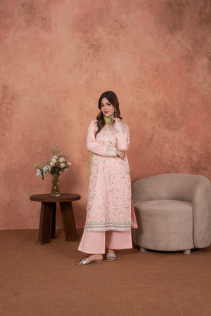 Feathers Unstitched 3 Piece Emb Lawn Summer Suit-Blush Petal Heirloom-FT696