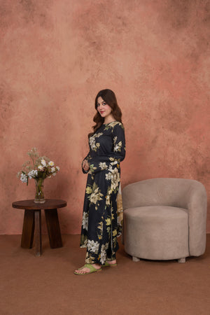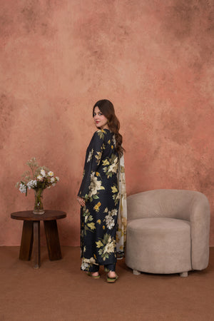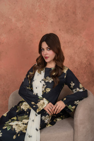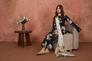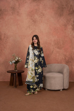 Feathers Unstitched 3 Piece Digital Printed Lawn Summer Suit-Noir Magnolia Luxe-FT718
