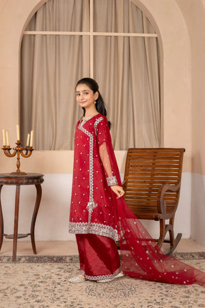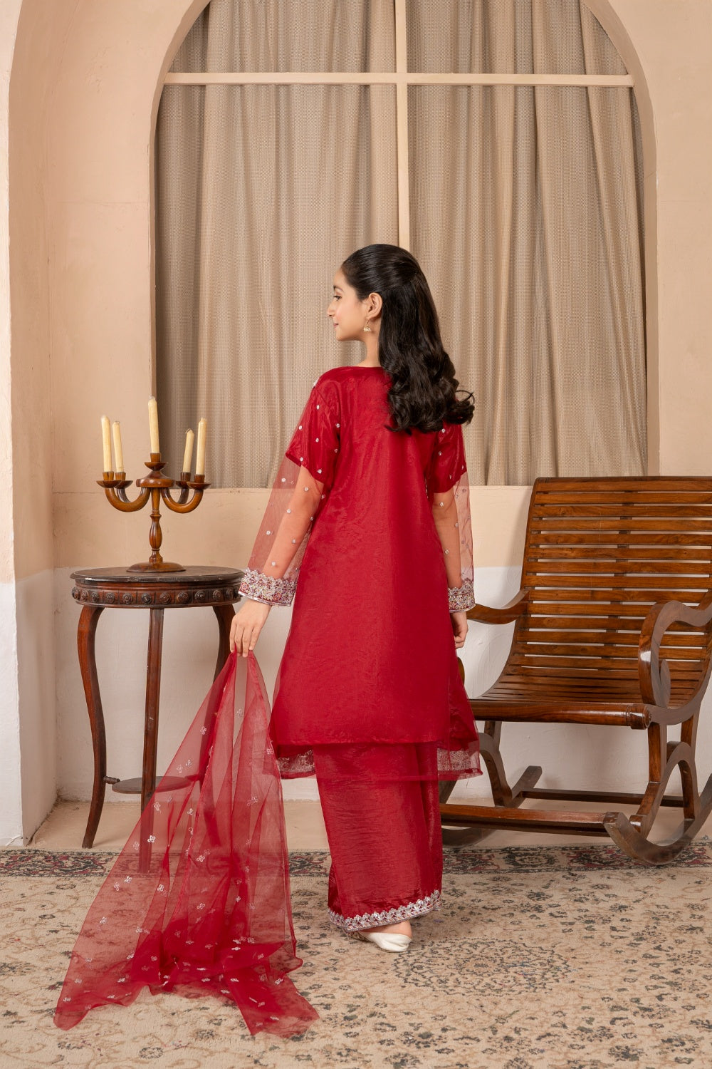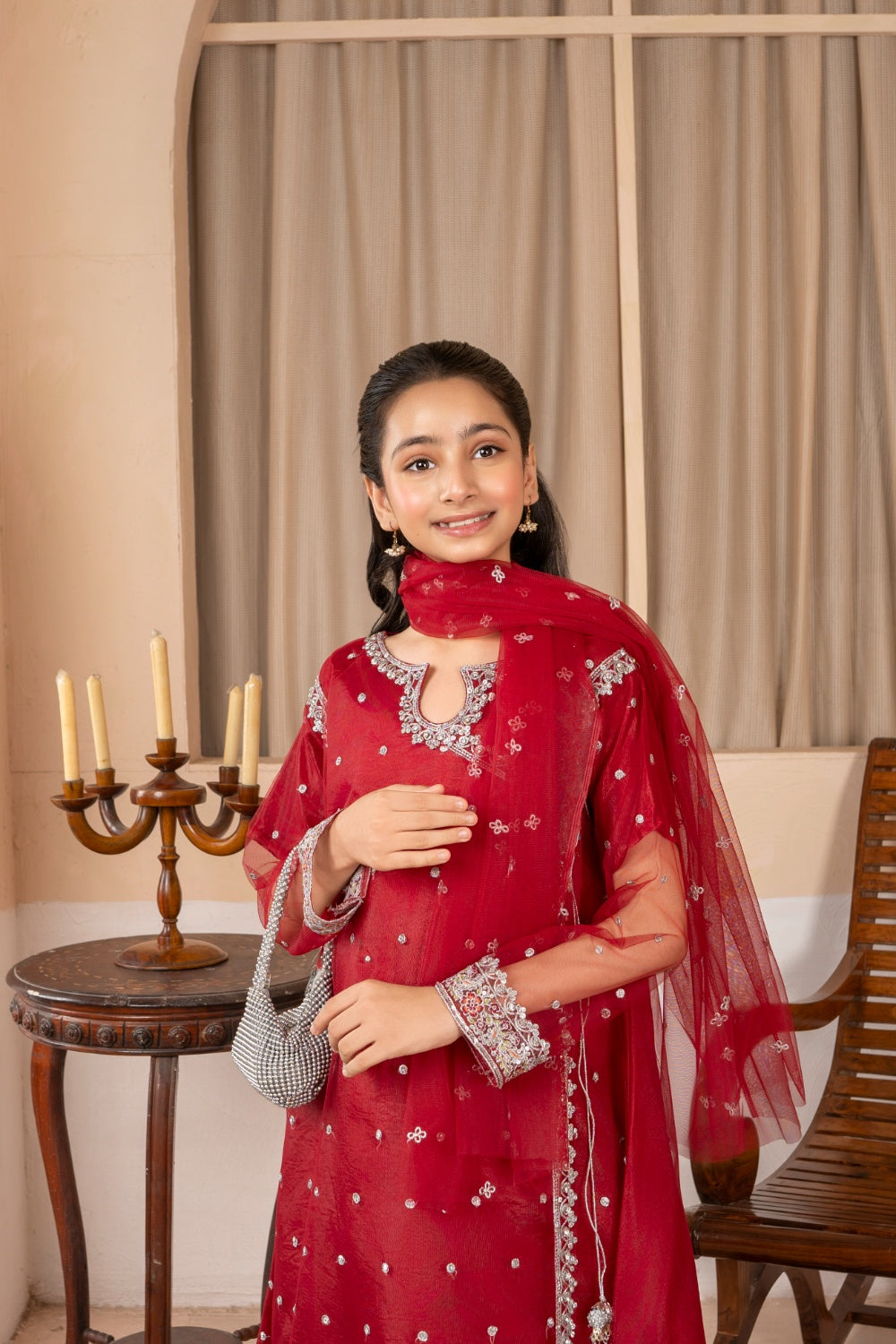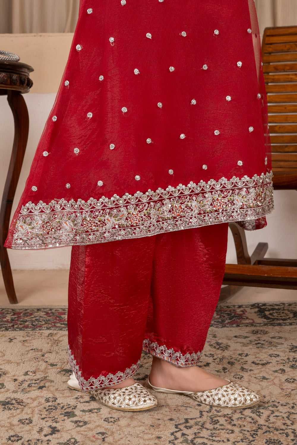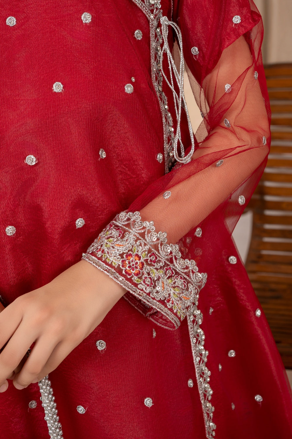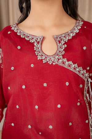 This stunning 3-piece embroidered angrakha festive dress exudes elegance and tradition. this outfit combines a beautifully tailored angrakha with matching bottoms and a complementary dupatta - Fabric Detail :