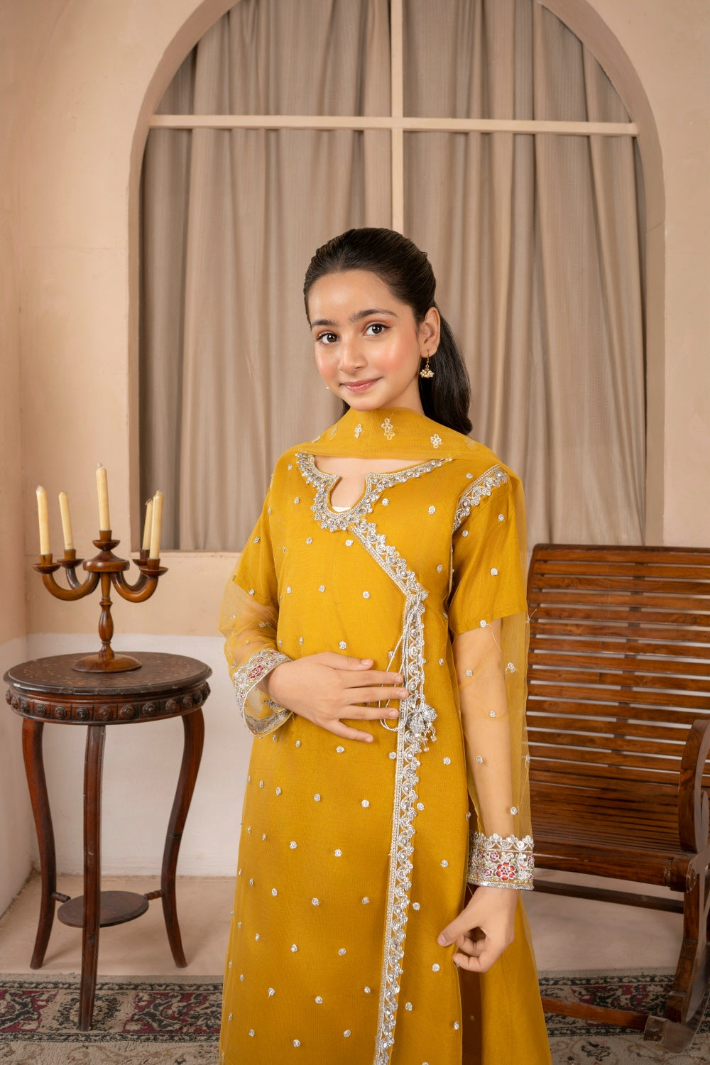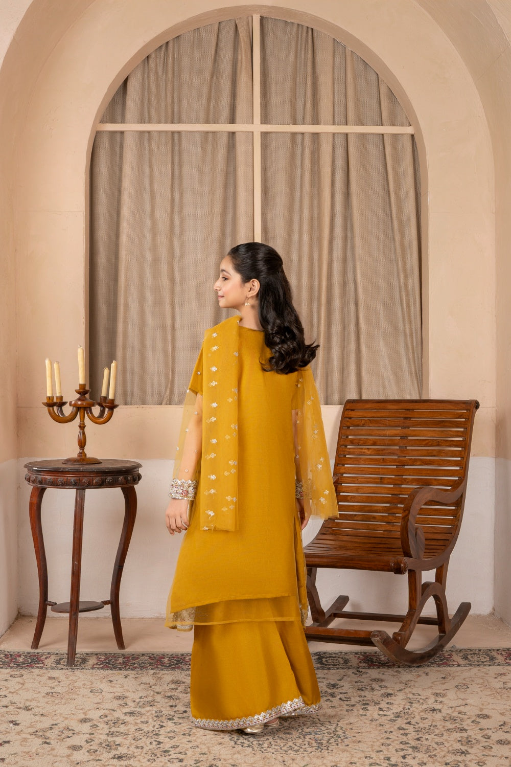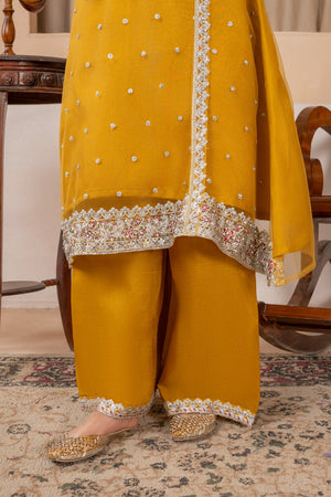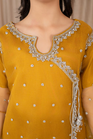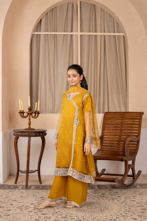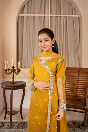 Khayat Stitched Festive Kids Suit-Mustard Angrakha