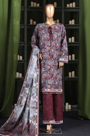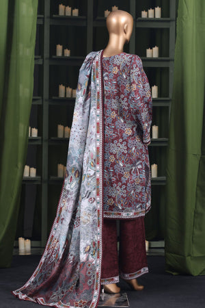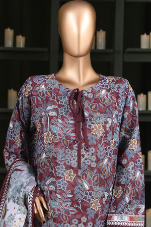 Hz Stitched 3 Piece Digital Printed Khaddar Vol-03 Suit-KPT-2576-Maroon