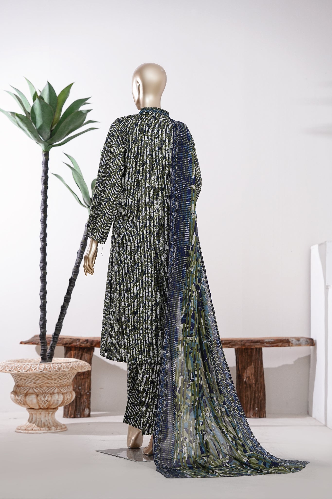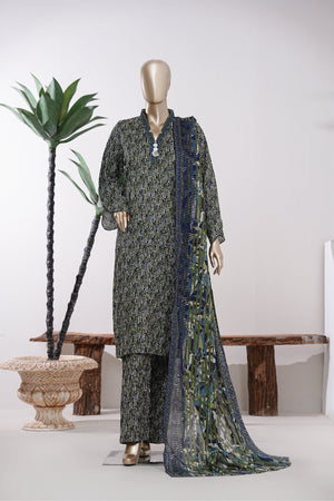 Bin Saeed Stitched 3 Piece Exclusive Printed Lawn Vol-09 Suit-LSM-2912-Black