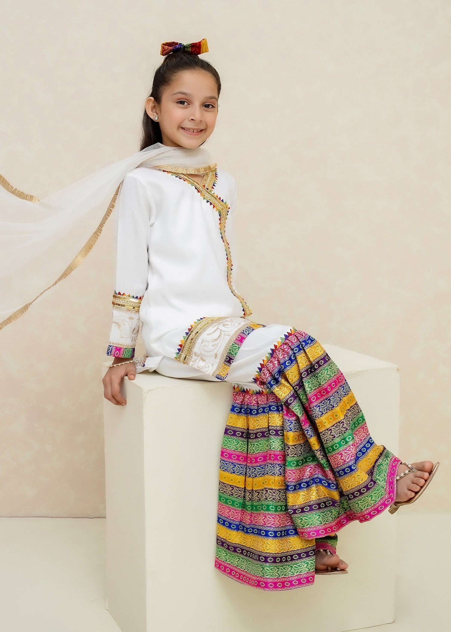 Mah e Noor By Modest Stitched 3 Piece Formals Collection-White