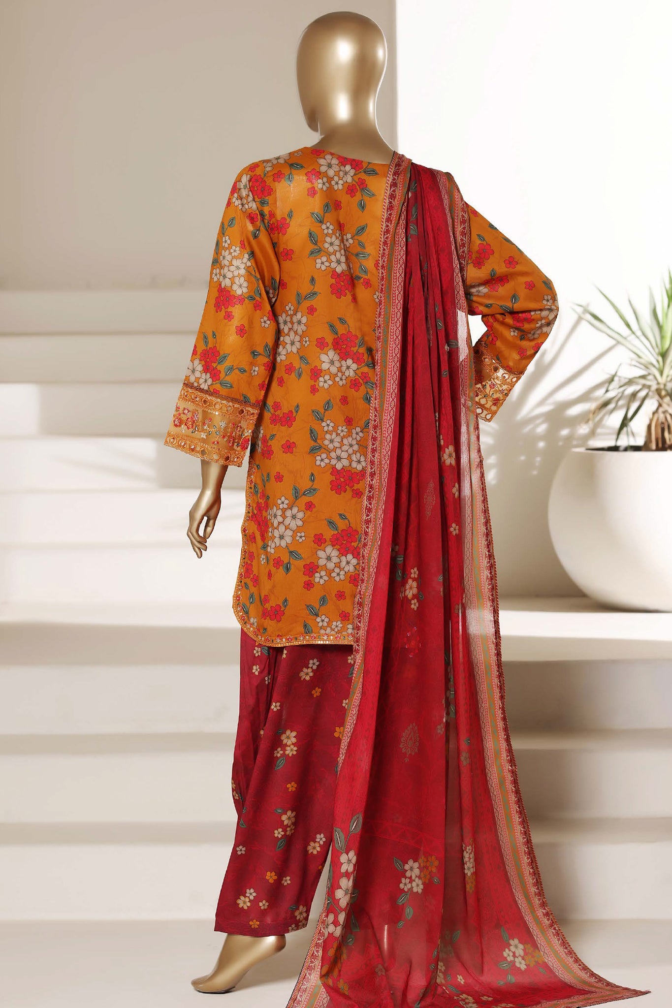 Malika By Sada Bahar Stitched 3 Piece Emb Lawn With Shalwar Suit-D-5066-GOLDEN
