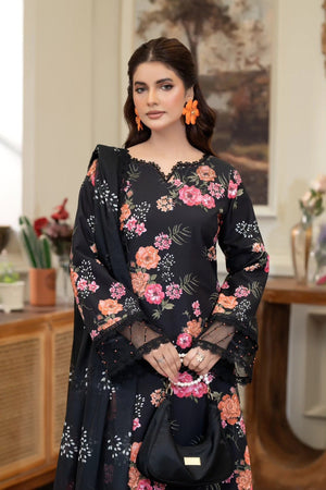 Summer Scent By Nine Needles Stitched 3 Piece Summer Suit-Midnight Jasmine-NP-02