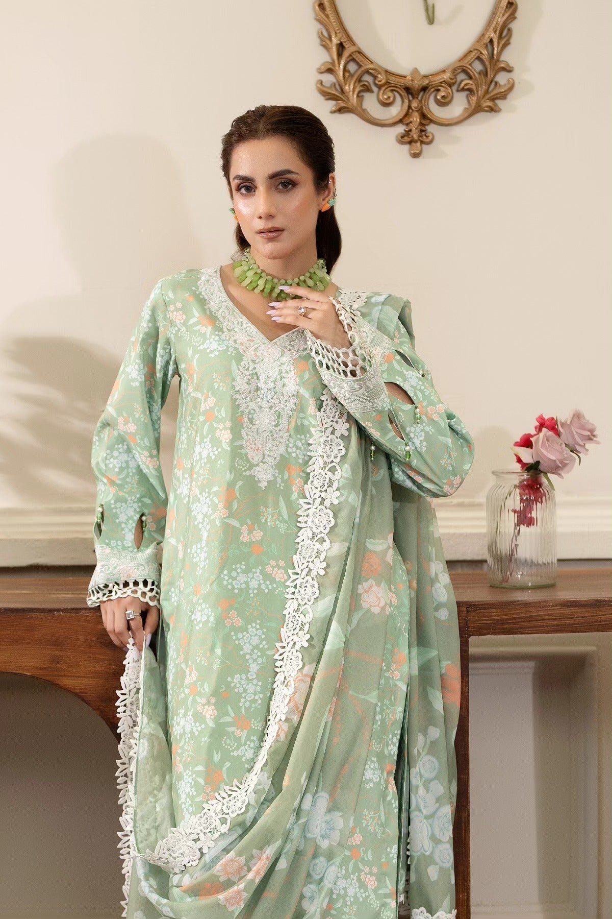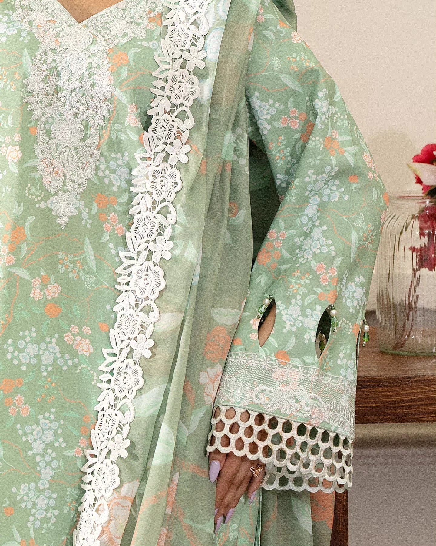 Summer Scent By Nine Needles Stitched 3 Piece Summer Suit-Mint Blossom-NP-04