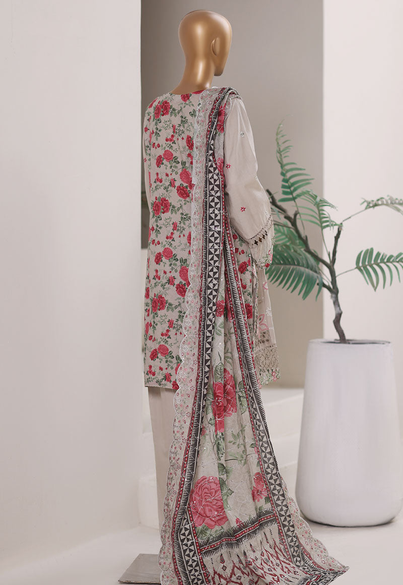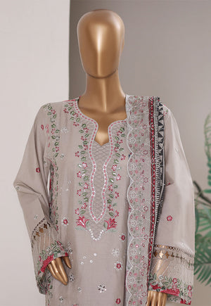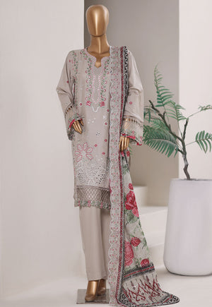Bin Saeed Stitched 3 Piece Luxury Emb Plain Cotton With Emb Dupatta Vol-01 Suit-NSM-2589 GRAY