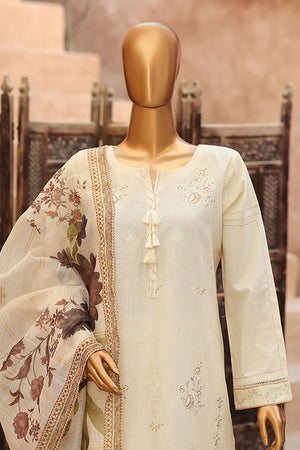 Sumi Stitched 3 Piece Self Cotton Jacquard Festive Suit-SCJ-01-Off White