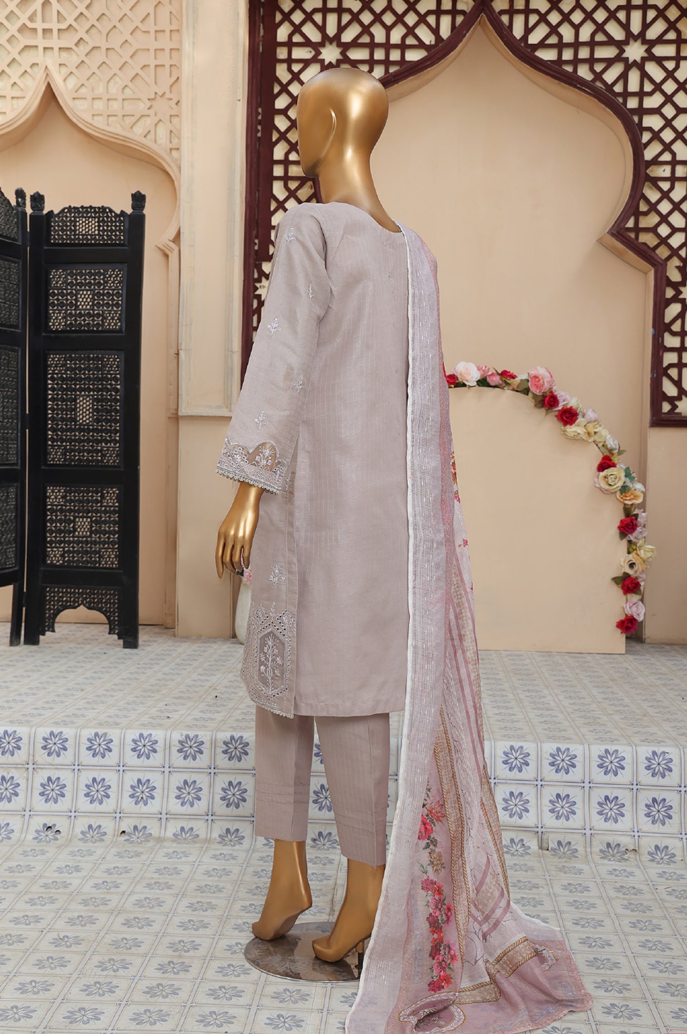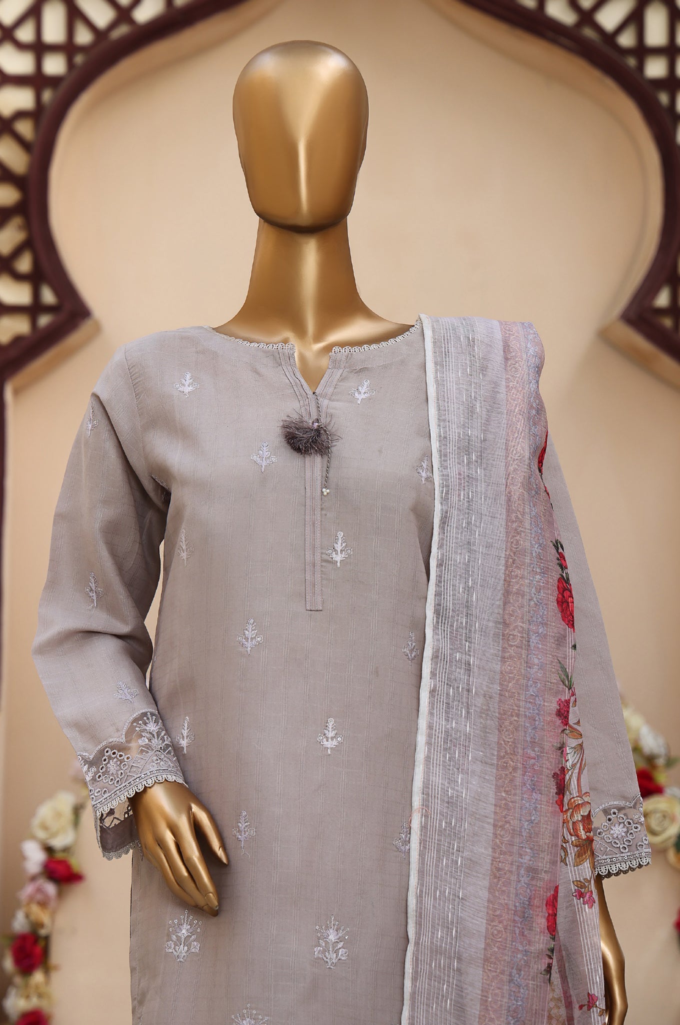 Sumi Stitched 3 Piece Emb Stiff Cotton Suit-SEC-09-Dove