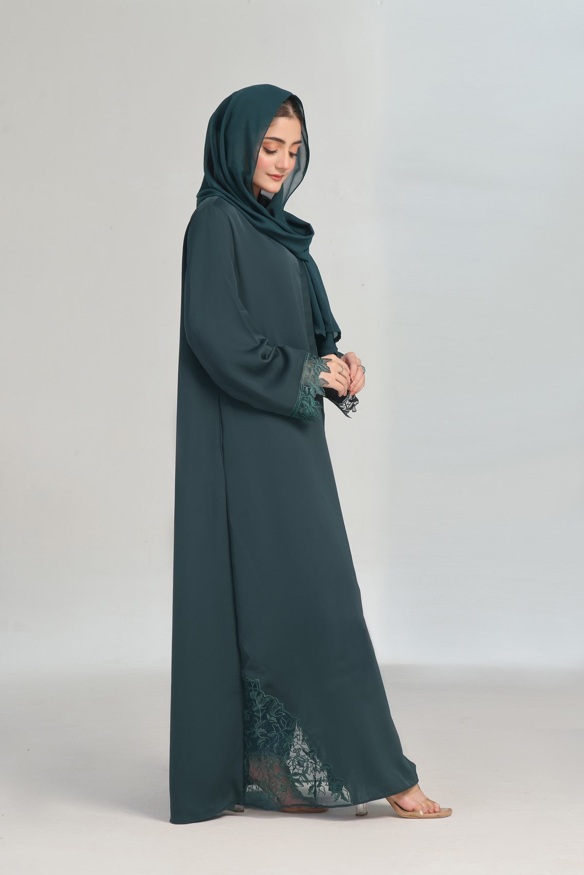 - Organza Thread Work on Sleeves: Delicate and intricate embroidery on the sleeves enhances the abaya’s elegance.