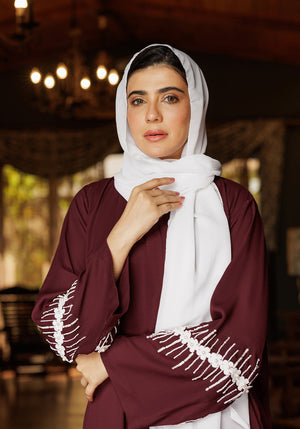 Hijabi.Pk Maroon Abaya Handwork on Sleeves | Serene Threads