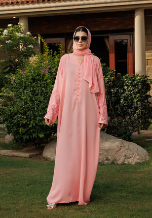 Enhance your wardrobe with this beautiful Floral Pink Abaya. Made with high-quality material, it offers both comfort and style. The intricate floral design adds a touch of elegance, perfect for any occasion. Invest in this versatile piece and elevate your fashion game.