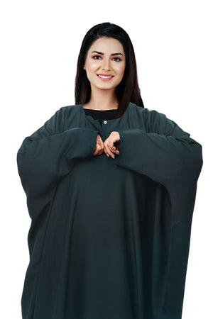 Product Description:Â Here is your ideal abaya made with high-quality Nida fabric, Butterfly design with flawless drapes, Cuff sleeves and Pull up gown style.