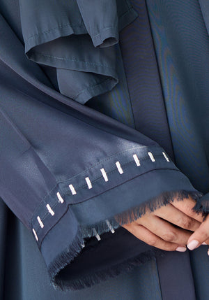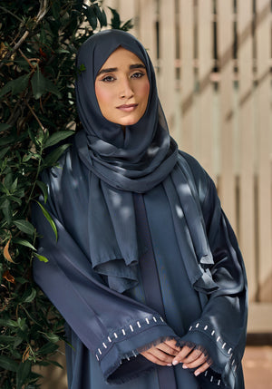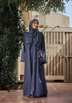 This Grey Batek Abaya is crafted from premium Nida fabric, known for its lightweight and breathable qualities. The distinctive Batek work on the sleeves adds an artisanal touch, combining traditional craftsmanship with modern elegance. Designed for both comfort and style, it offers a refined look suitable for various occasions.