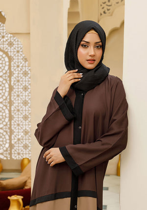 Hijabi.Pk Bicolor Front Open Abaya Brown & Beige