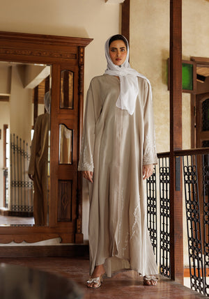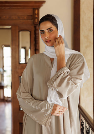 Elevate your wardrobe with the Pearls Dabka Abaya from Serene Threads, crafted from luxurious crushed fabric that drapes elegantly. This abaya combines timeless design with refined texture, offering both comfort and a graceful silhouette for any occasion. Perfect for those who appreciate understated sophistication and quality craftsmanship.