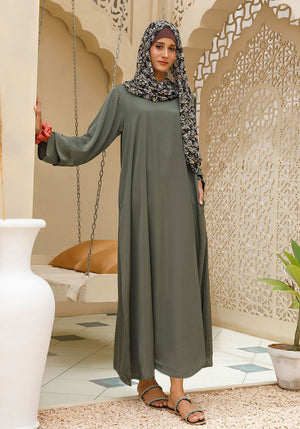Our simple moss green abaya from our mother-and-daughter collection has been tailored to embody simplicity and grace. A minimalistic look that allows the beauty of the abaya to shine. Accompanied by contrasting hijab elevates the overall aesthetics, conveying a sophisticated look. Furthermore, an added incentive of 10% discount is offered when purchasing mother and daughter abayas together.