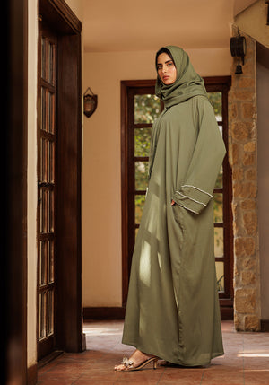 Hijabi.Pk Olive Pearl Sleeve Abaya - Signature